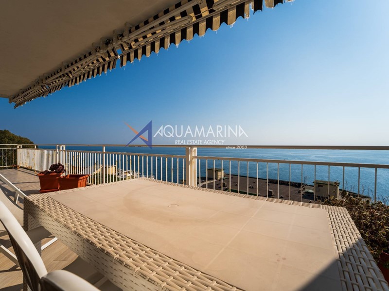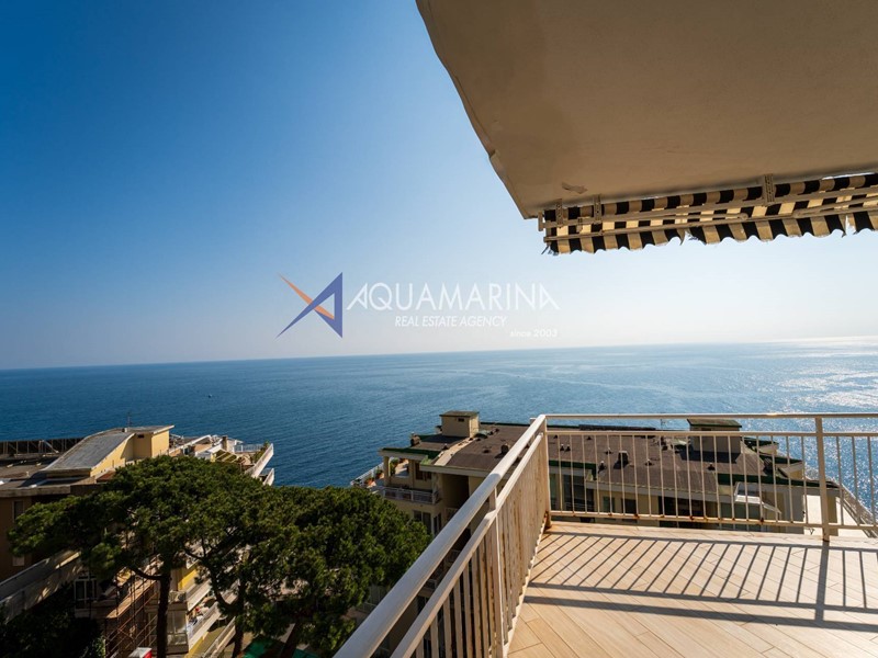 A Ospedaletti, vendiamo appartamento esclusivo, con vista mare mozzafiato. In contesto residenziale con Piscina e Portineria, il Condominio Patrizia è un complesso fronte mare in una delle zone più belle e caratteristiche del Ponente Ligure, proponiamo in vendita un appartamento ristrutturato, con un terrazzo di 50 mq che offre una vista mare eccezionale che spazia da Sanremo alla Francia. In una palazzina di 5 piani, lappartamento si trova al terzo piano con ascensore, è stato completamente ristrutturato e viene venduto arredato, è cosi composto: Ingresso, grande salone openspace con cucina a vista, 2 bagni, 2 camere, grande cabina armadio, ripostiglio, terrazzo di 50 mq che gira intorno su 2 lati, completa la proprietà un box di circa 20 mq e un posto condominiale di proprietà.