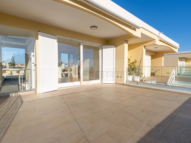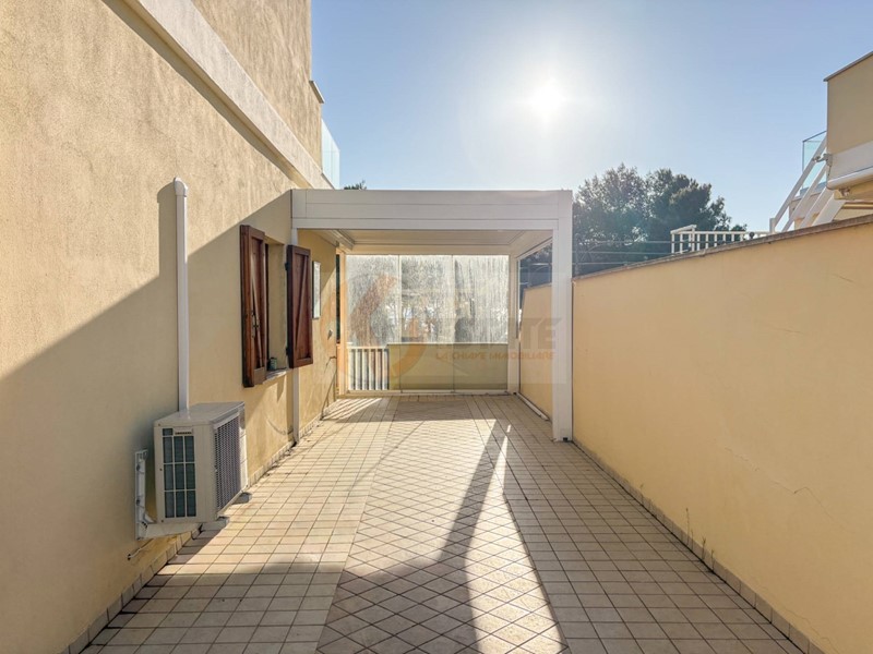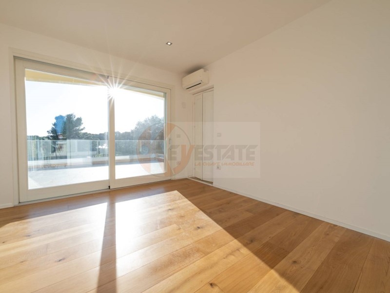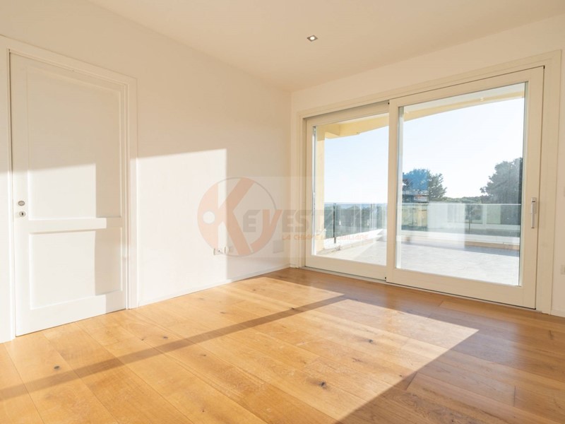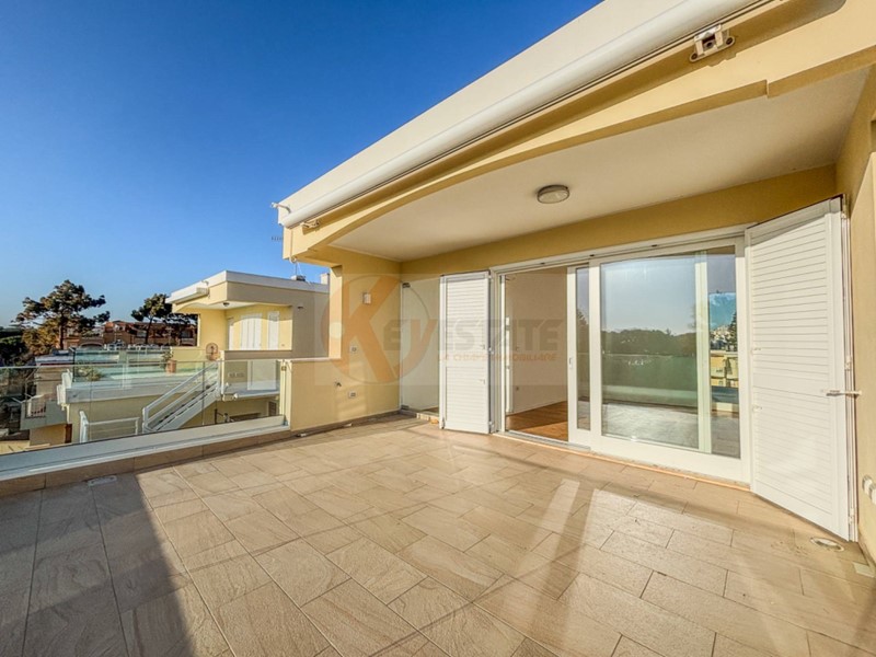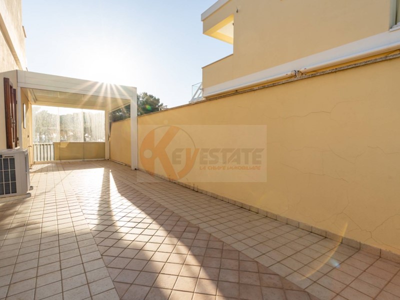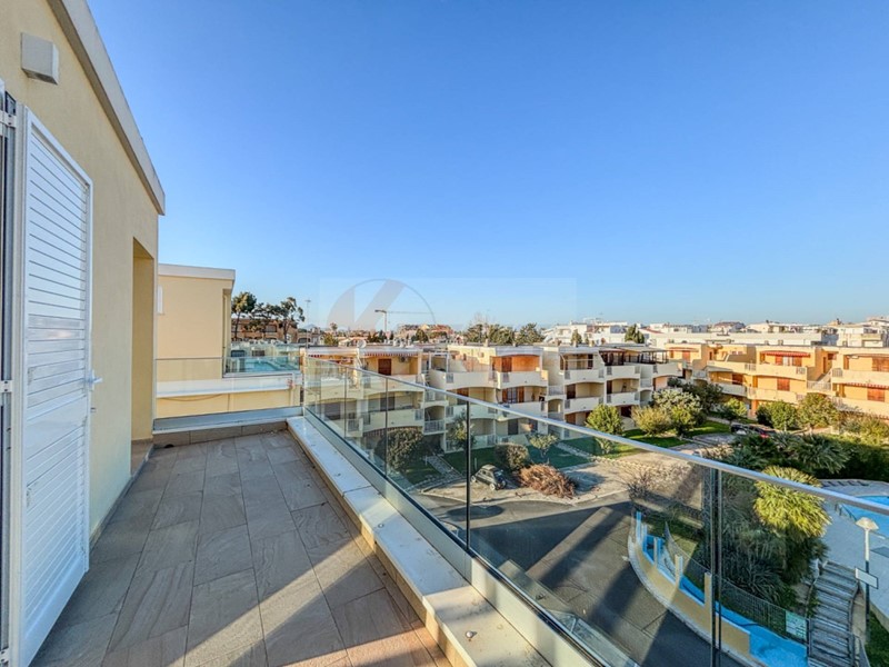 Al piano superiore trovi un ambiente aggiuntivo con camera e bagno. Da qui accedi a due terrazze: una più riservata con affaccio interno sulla piscina condominiale, laltra con una vista aperta sul mare e sulla via, capace di lasciare senza fiato.