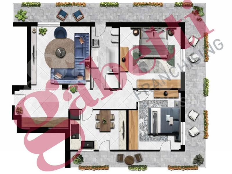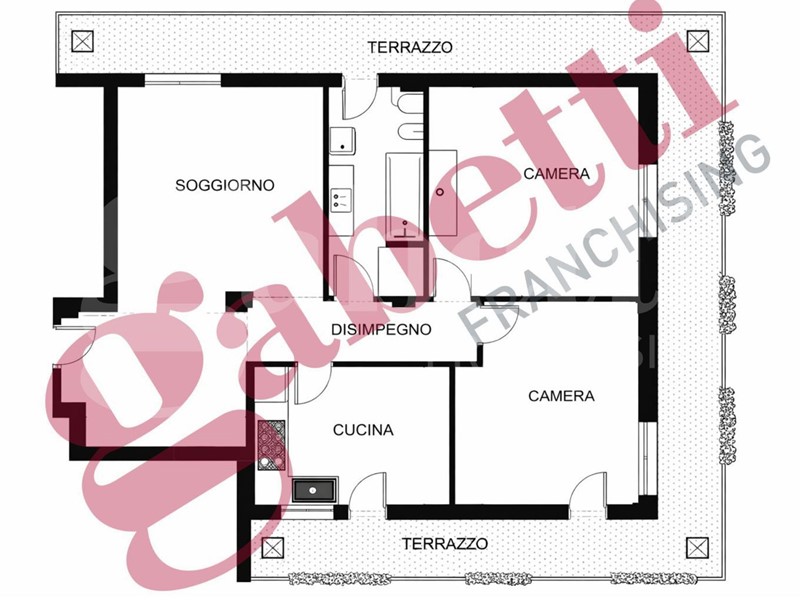 Uno splendido terrazzo libero su tre lati, accessibile da più ambienti: uno spazio perfetto per rilassarsi, mangiare all'aperto o creare un angolo verde tutto tuo.