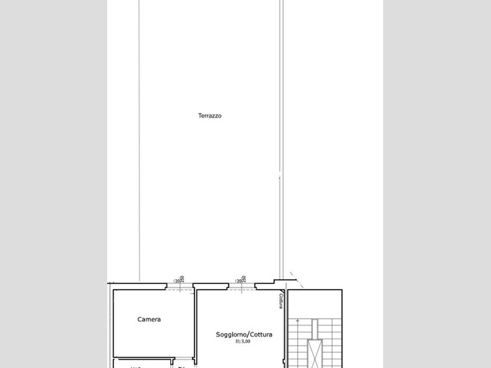 Tutti i vani hanno accesso alla grande terrazza abitabile di 60 mq, vero surplus dell'immobile.