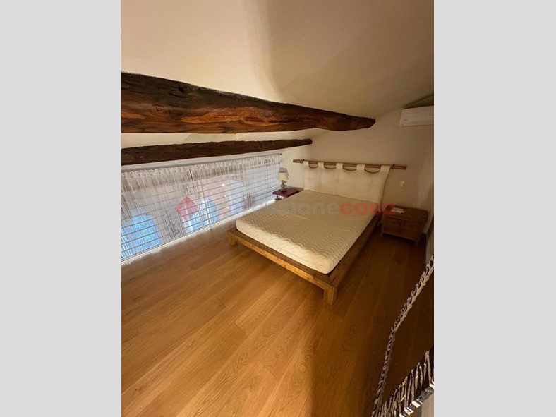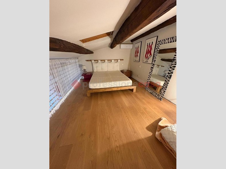 Al piano soppalcato troviamo la zona notte, con una camera da letto accogliente e una grande cabina armadio, pratica e ben organizzata.