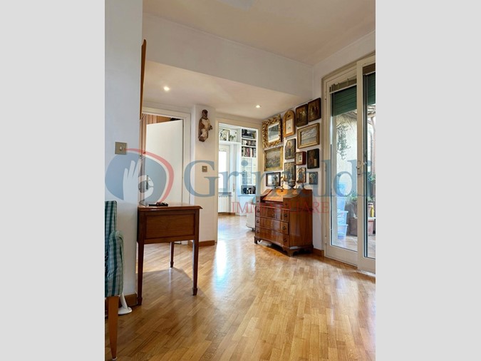 SAN PIETRO - Via Monte del Gallo, in caratteristica palazzina senza ascensore, l'agenzia Grimaldi S. Pietro propone la vendita di un luminoso trilocale con terrazzo. L'immobile si compone di salone, cucina abitabile, due camere matrimoniali, bagno con doccia, soppalco, balcone e terrazzo di c.a 20 mq con forno . Alcune caratteristiche : portone blindato, infissi con doppi vetri, pavimento in parquet, caldaia a gas per riscaldamento ed acqua calda, aria condizionata. Buone condizioni, tripla esposizione . Terrazzo condominiale ad uso dei condomini.