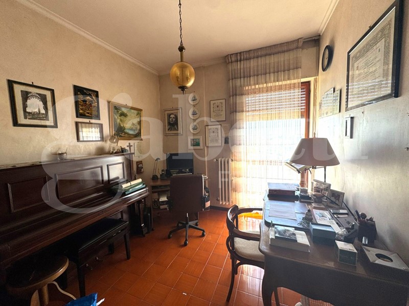 Il suo accesso è disposto con due porte d'ingresso, dove ad accoglierci abbiamo una confortevole zona giorno con disimpegno, salone doppio e cucina abitabile con doppio servizio/lavanderia. Attraverso un corridoio si accede alla zona notte, con due comode camere da letto, studio e ampio bagno.