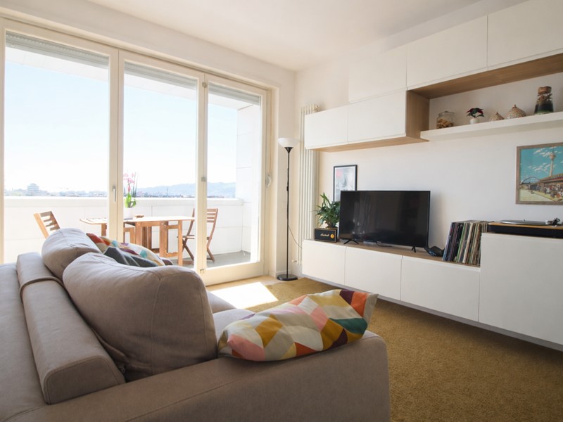L'immobile è composto da ingresso su soggiorno con cucina a vista, piccolo terrazzino abitabile con piacevole vista aperta e panoramica sui colli, camera matrimoniale con secondo terrazzino abitabile e bagno en suite non finestrato.