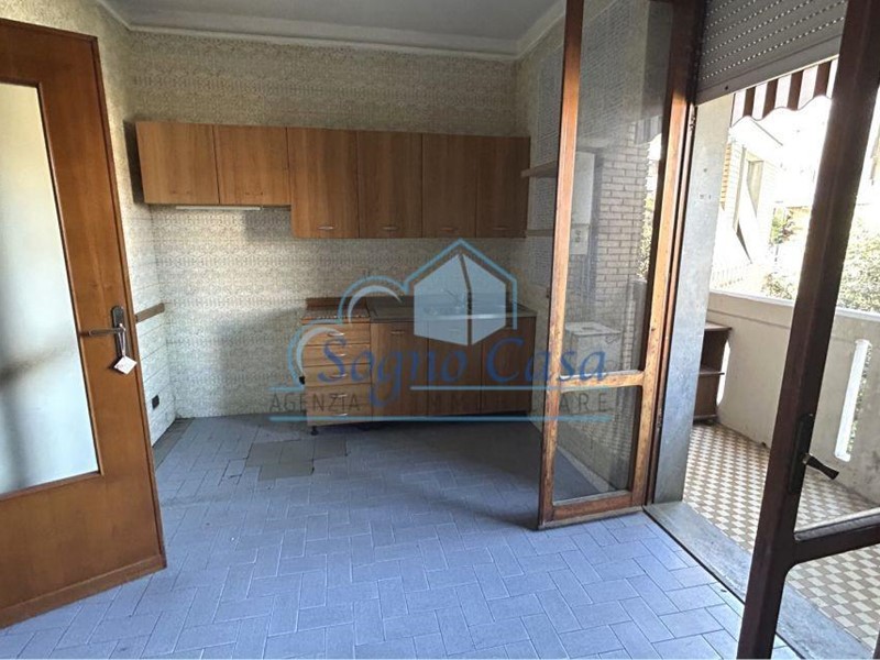 Sulla sinistra troviamo una cucina abitabile di grandi dimensioni, anch’essa dotata di porta finestra su un secondo terrazzino e con la possibilità di ricavare un pratico ripostiglio: una soluzione pensata per unire funzionalità e praticità.