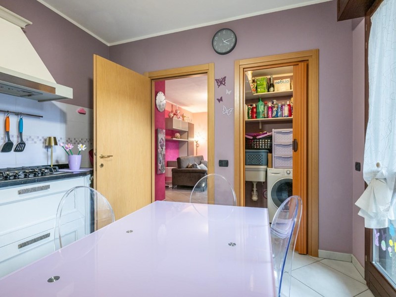 L’appartamento, esposto a est, sud e ovest, si apre direttamente su un luminoso soggiorno. La cucina è abitabile ed è dotata di un pratico locale dispensa/lavanderia.