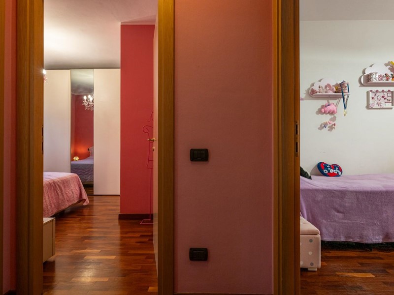 Il reparto notte comprende un bagno principale finestrato con vasca e due camere, una singola e una matrimoniale, quest’ultima con bagno padronale.