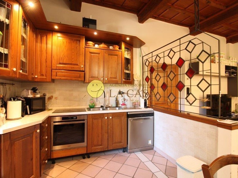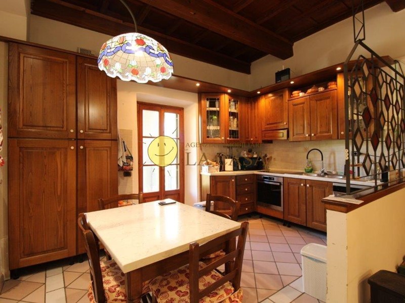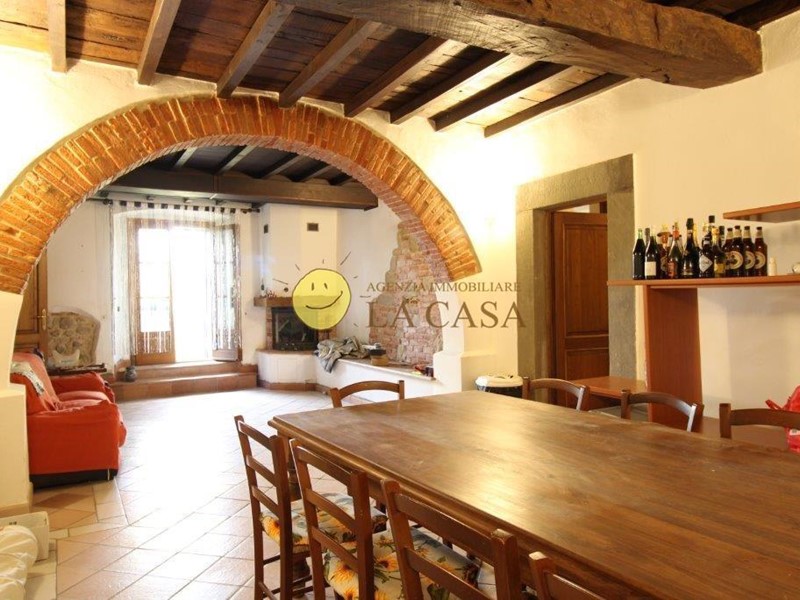L’immobile è composto da accesso indipendente da loggia in soggiorno-pranzo con angolo cottura, disimpegno notte, due camere da letto e un servizio. Al piano presente anche un locale lavanderia. Da scala interna si accede alla parte inferiore (provvista anche di accesso dall’esterno) composta da grande taverna con camino, oltre a locale pluriuso (da poter adibire a terza camera), locale tecnico, ripostiglio e secondo servizio. Nella proprietà annesso appezzamento di terreno boschivo di circa 6000 mq. (1 km di strada sterrata).