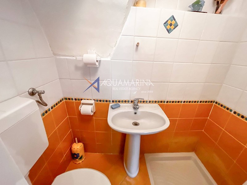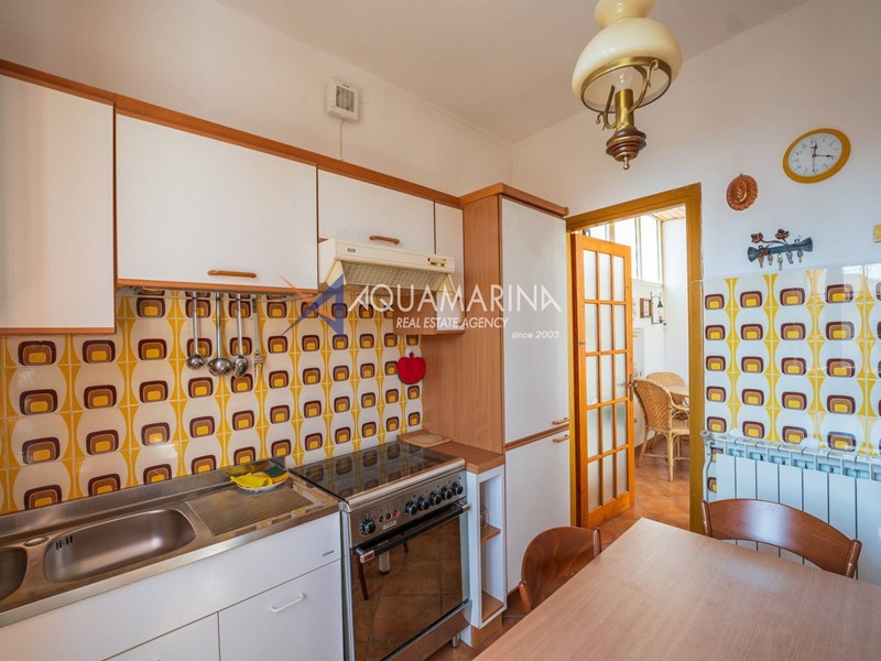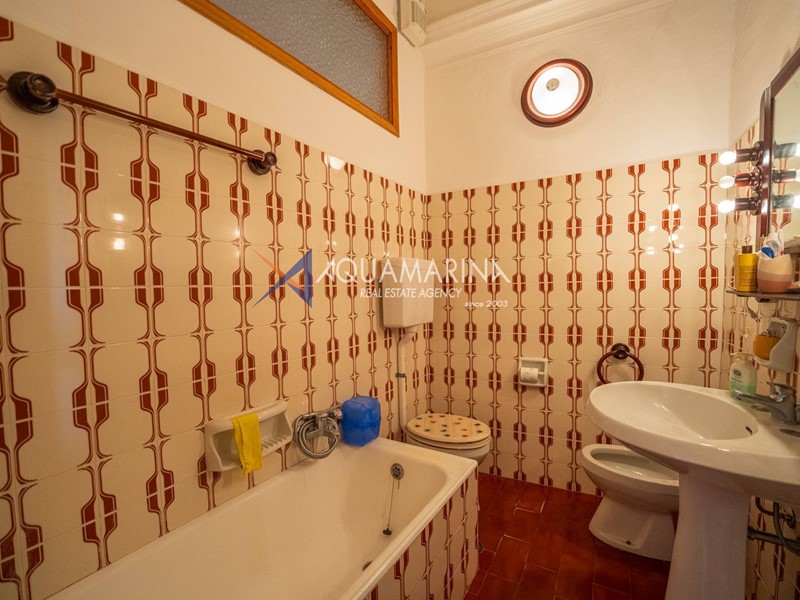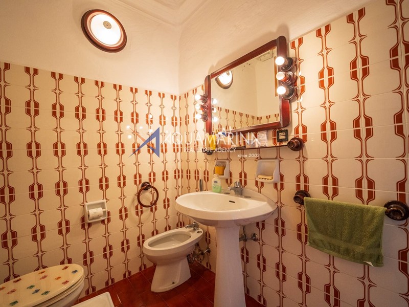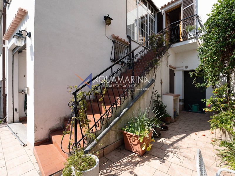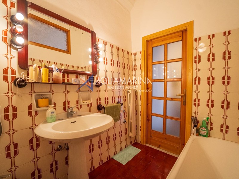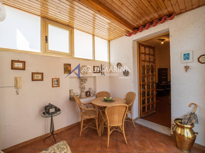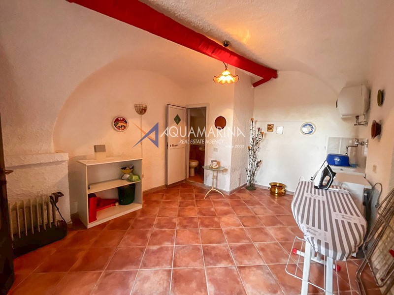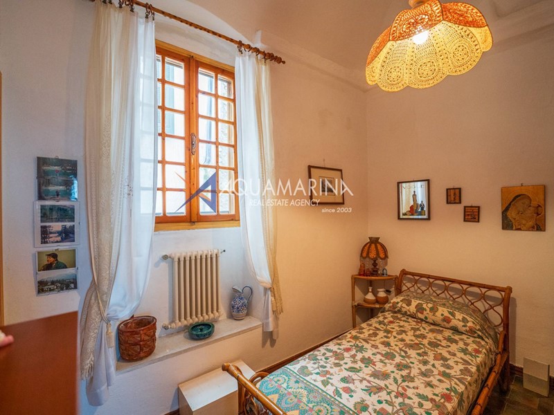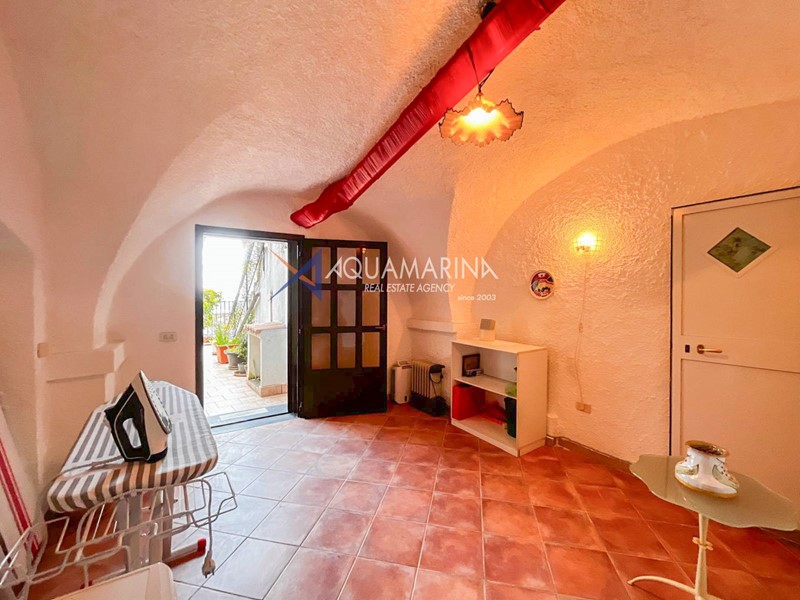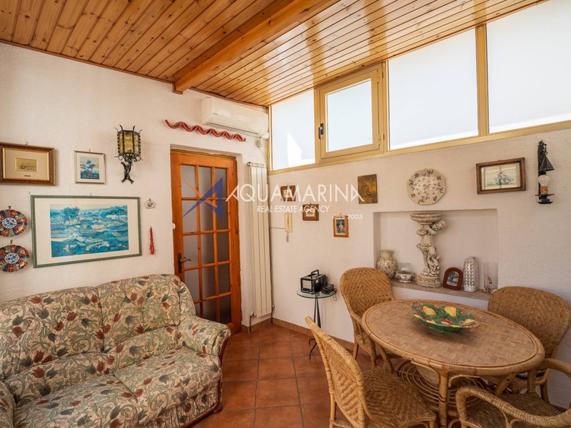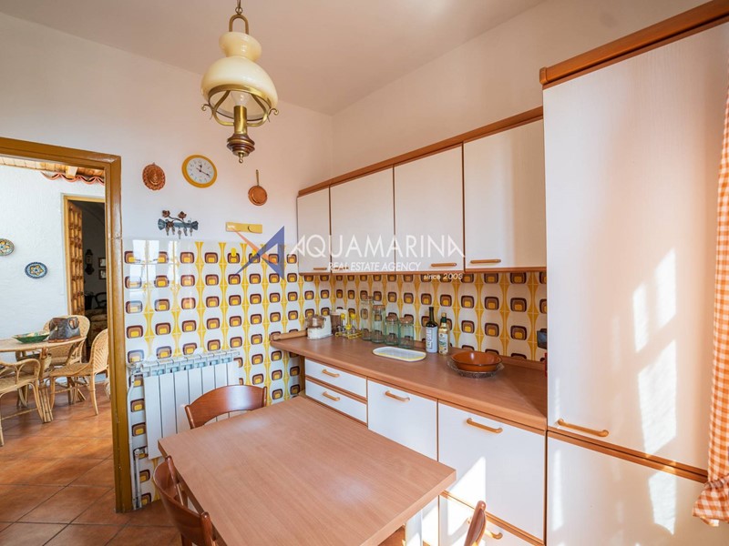 Al primo piano, accessibile tramite scala esterna, labitazione principale si apre su un accogliente ingresso con soggiornino, una cucina semi abitabile, unampia e luminosa zona giorno, una camera matrimoniale, una cameretta e il bagno principale.
