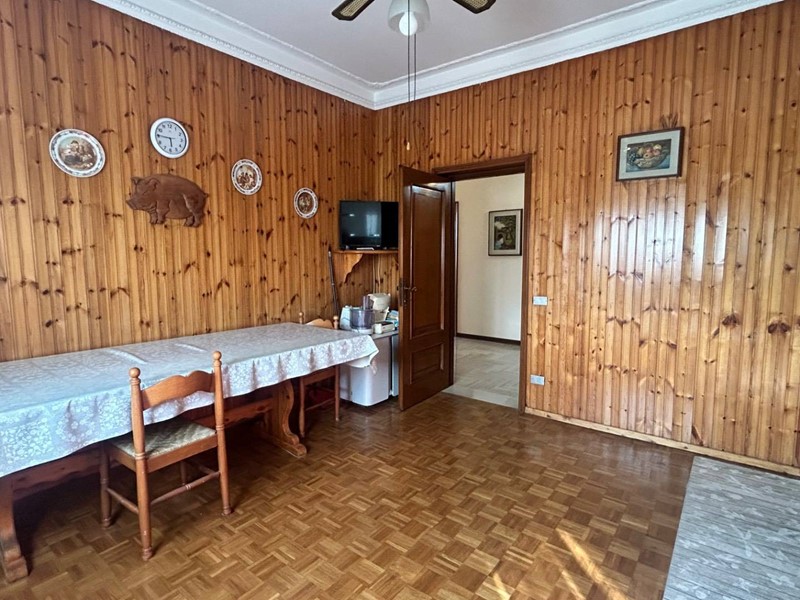 L'immobile si apre su un ampio ingresso che conduce al salone principale, servito da un grande balcone, e a una seconda sala di circa 30 mq valorizzata da un caminetto a legna. La cucina è separata e abitabile.