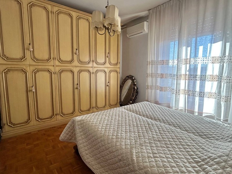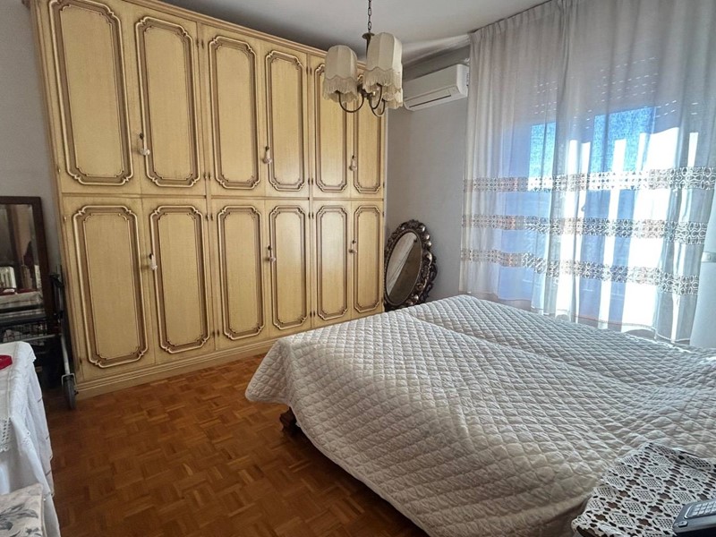 La zona notte attuale dispone di due camere matrimoniali, di cui una con balcone dedicato, e un bagno finestrato spazioso con vasca. La pianta dell'appartamento è particolarmente versatile e consente, con interventi mirati, di ricavare una terza camera da letto e un secondo bagno, anchesso finestrato.