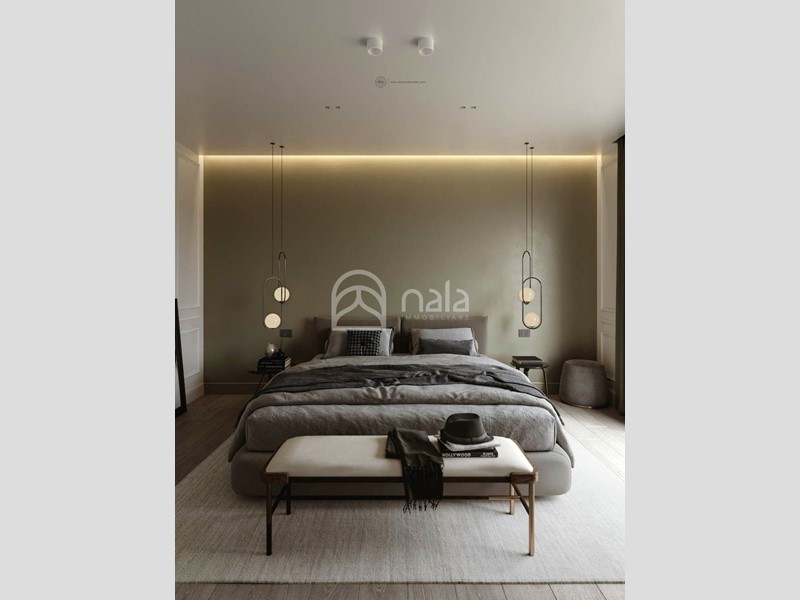 L'appartamento è composto da ampio ingresso - soggiorno - angolo cottura, disimpegno, due camere matrimoniali, stanza armadi, due bagni finestrati.