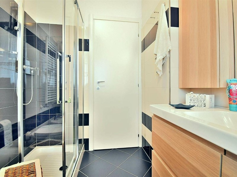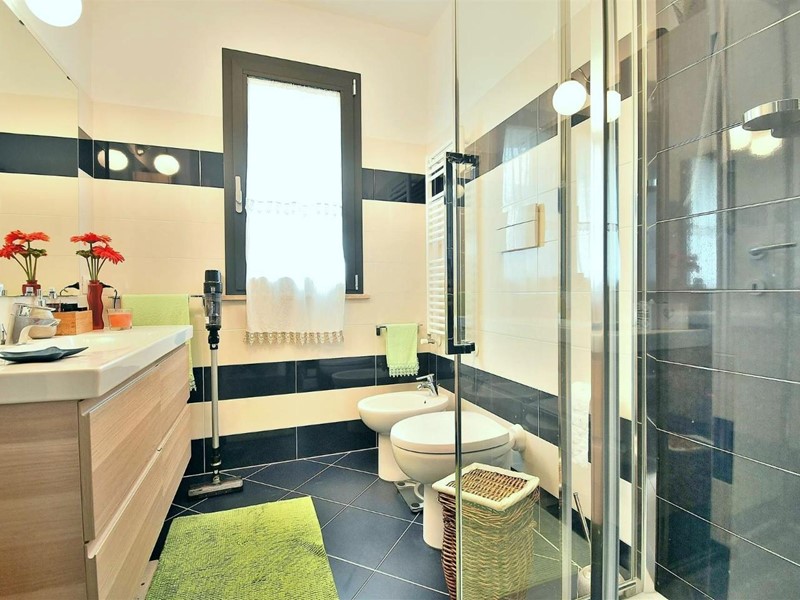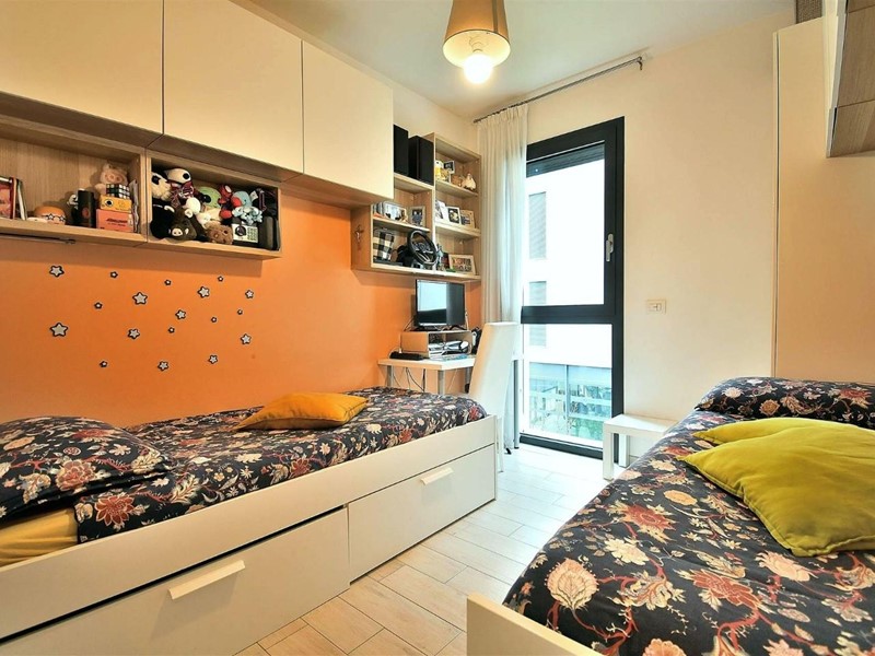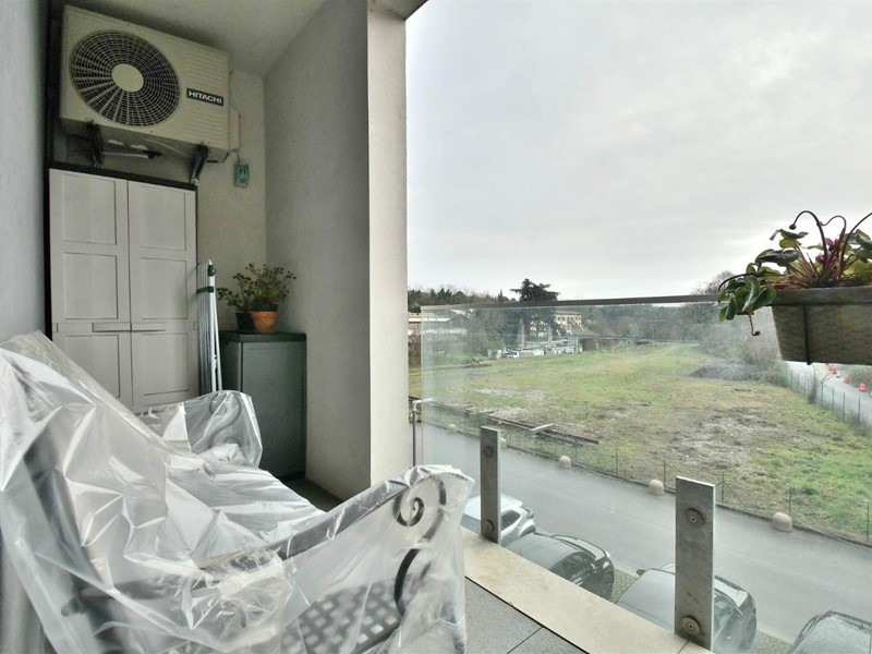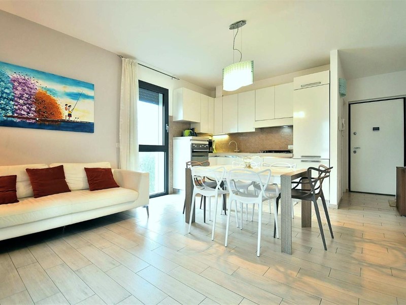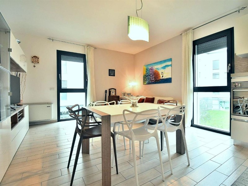 In contesto residenziale, a due passi dalla stazione ferroviaria e vicino al centro, appartamento di mq 75, posto al piano primo, di edificio moderno di recente costruzione, composto da ampio soggiorno luminoso con angolo cottura, una camera matrimoniale, una camera singola, due bagni finestrati e ripostiglio. Balcone. Aria condizionata. Ascensore. Completano la proprietà un posto auto in box coperto e una cantina. Ottime rifiniture.