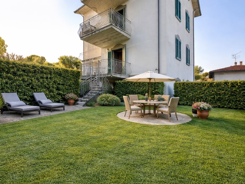 Il vero punto di forza della proprietà è lo spazio esterno: una terrazza abitabile, ideale per pranzi e momenti di relax, collegata tramite una comoda scaletta a un giardino privato, una soluzione rara così vicina al mare.