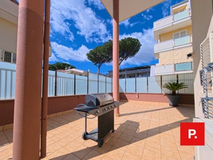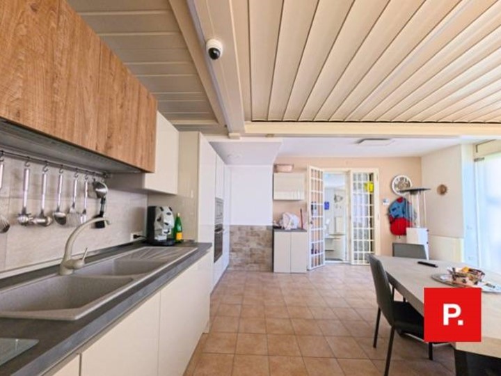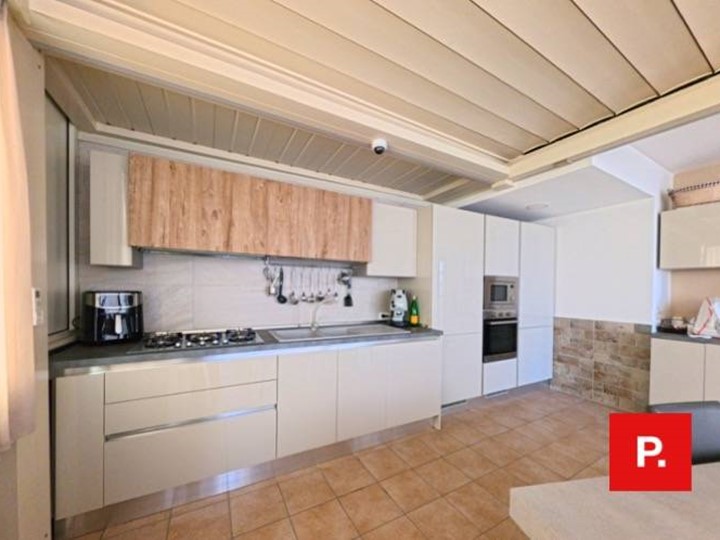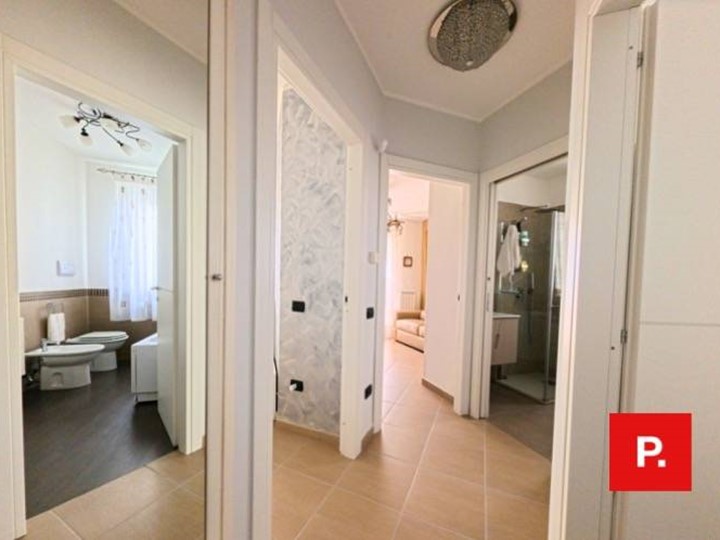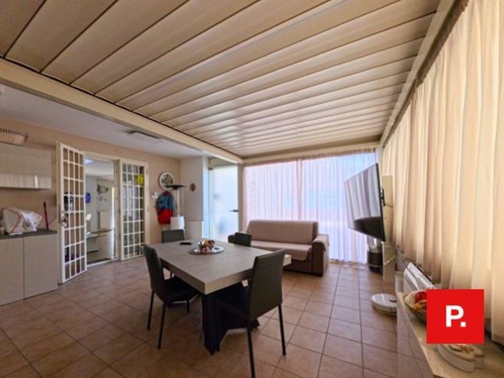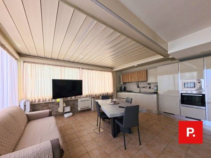 Dispone di salone con cucina a vista, due camere da letto, due bagni e un ulteriore vano di 35 mq realizzato sul terrazzo con pareti in vetro dotate di tende oscuranti. Possibile quindi ricavare la terza camera da letto poichè dotato di doppia cucina