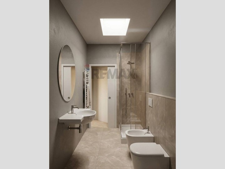 Bilocale di 59 mq, con doppia esposizione e ottima luminosità, composto da: soggiorno con cucina a vista, bagno con antibagno, camera con cabina armadio.