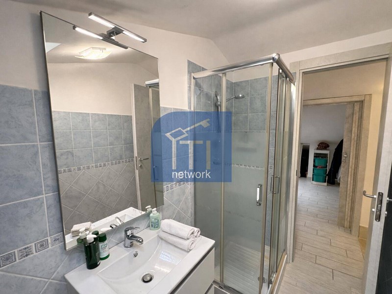 La zona superiore, soffitta, mansardata, offre una camera da letto accogliente ed una cameretta, entrambe ben organizzate con ampissimo vano ripostiglio utilissimo per stivare valigie e le cose meno utilizzate, quindi un ulteriore bagno ben rifinito con box doccia.