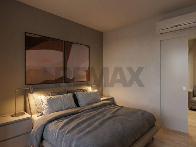 Questo appartamento è di circa 47 mq, presenta affaccio a SO, ed è così composto: Ingresso/disimpegno, bagno, soggiorno con cucina a vista, camera da letto matrimoniale.