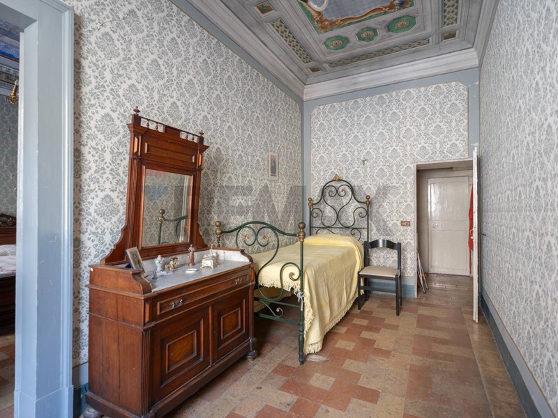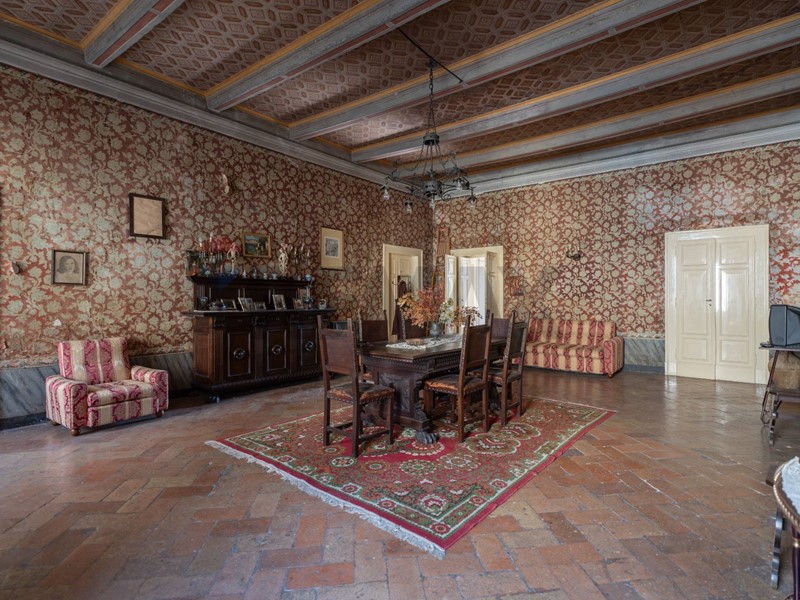 Allingresso, ci accoglie un grande salone di rappresentanza, dove la luce filtra dalle ampie finestre e accarezza i soffitti affrescati, sospendendo il tempo e regalando unatmosfera unica. La residenza principale comprende tre camere da letto e un bagno, tutte ambientazioni che conservano la stessa aura: ogni stanza è un rifugio di quiete, eleganza e fascino storico.