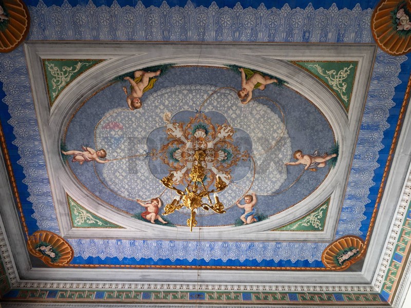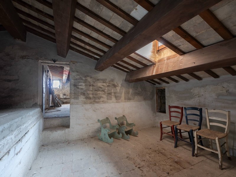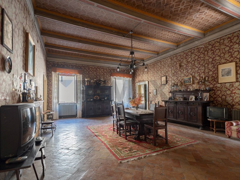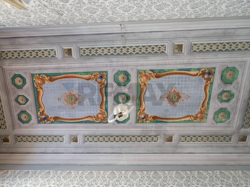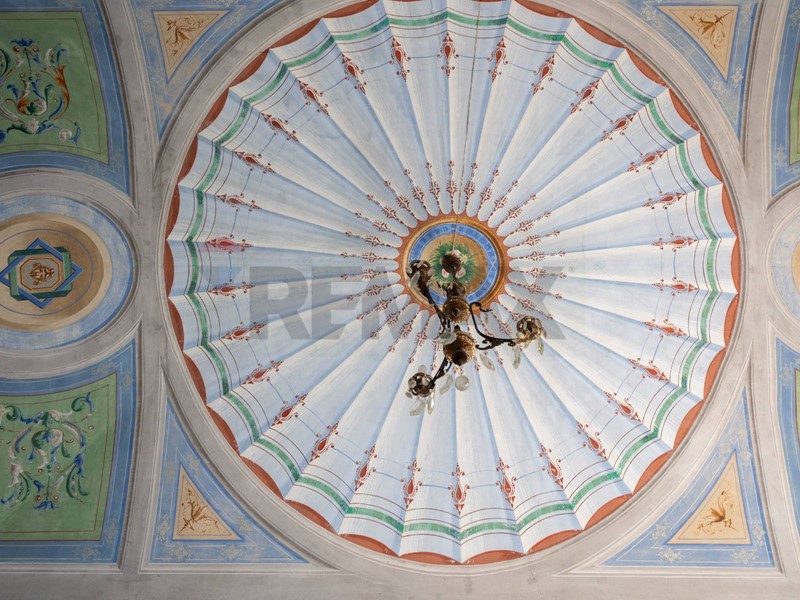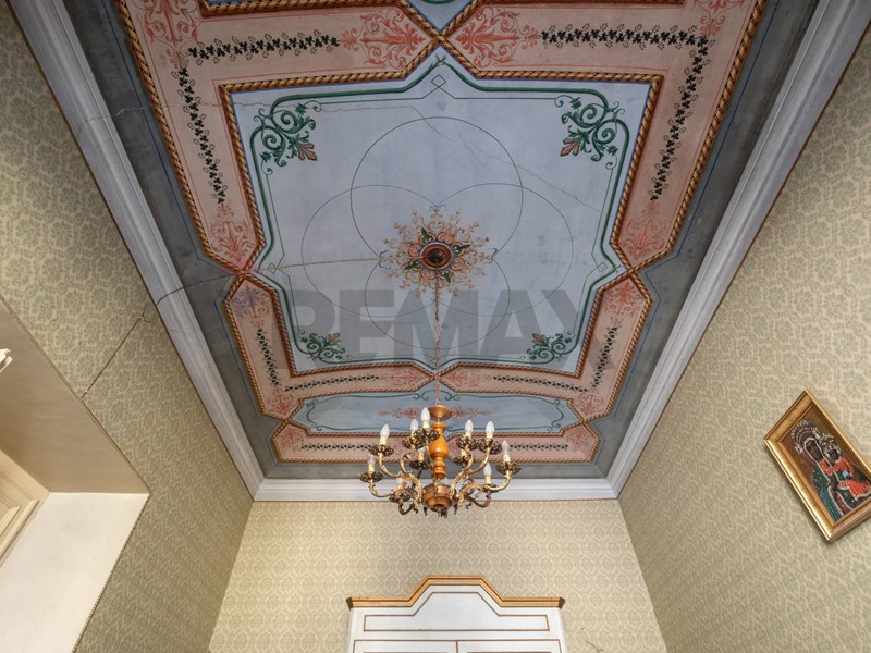 At the entrance, you are welcomed by a grand reception hall, where light filters through large windows and gently touches the frescoed ceilings, suspending time and creating a unique atmosphere. The main residence includes three bedrooms and a bathroom, all spaces that preserve the same aura: each room is a haven of tranquility, elegance, and historical charm.