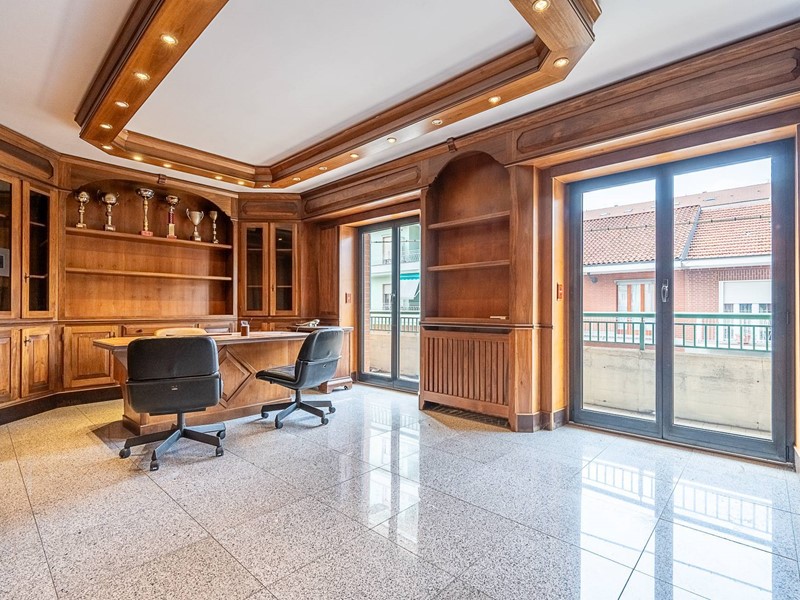 In palazzina signorile del 1993 in perfetto stato di manutenzione, dotata di ascensore e priva di barriere architettoniche, al piano primo unico appartamento di circa 180 mq (eventualmente frazionabile) in ottime condizioni interne, composto da doppi ingressi, salone impreziosito da boiserie con tapparelle elettriche, cucina abitabile, tre camere, ulteriori due camere singole, due bagni finestrati, due terrazzi vivibili e angolari di circa 30 mq ciascuno con affaccio sull'interno cortile, e due balconi lato strada.