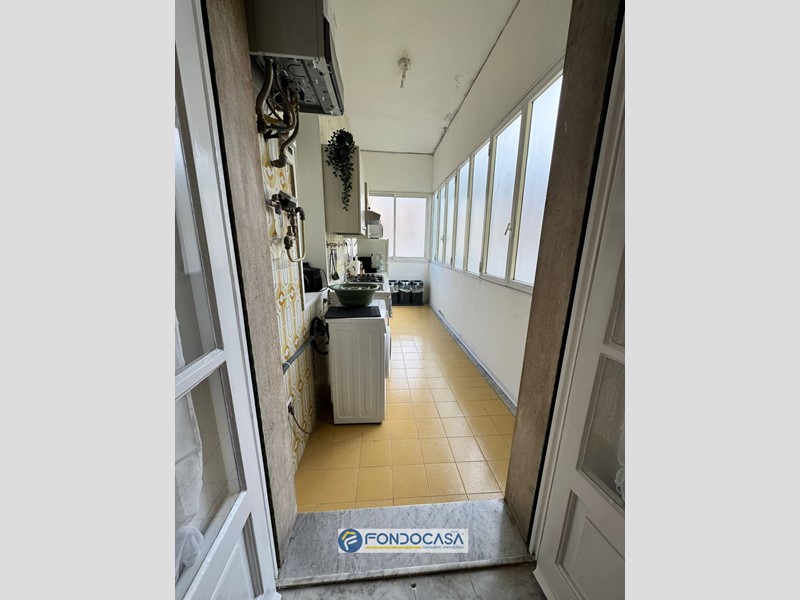 L'appartamento, di circa 145 metri quadrati, si trova al quinto piano di un edificio con ascensore, costruito nel 1970 e si distingue per la sua ampiezza e luminosità grazie alla presenza di ampi balconi che regalano una piacevole vista mare.