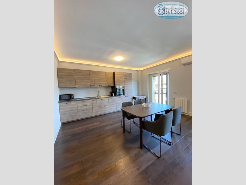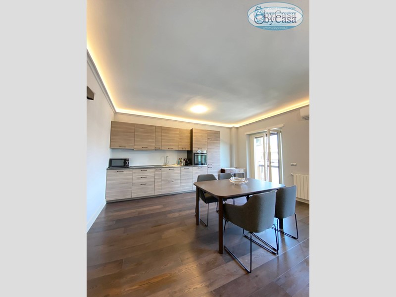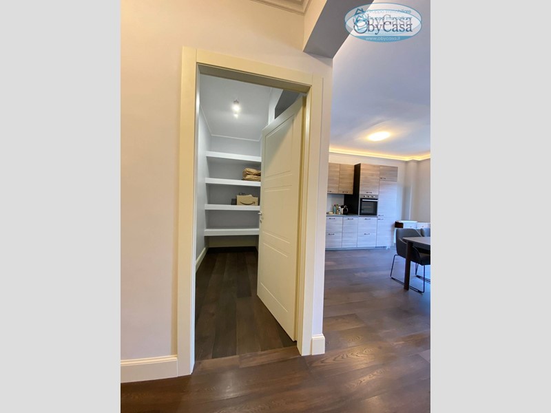 L'appartamento è composto da ampio ingresso due locali, il primo ad uso lavanderia ed un locale cabina armadio, salone open-space con cucina a vista, bagno, camera da letto con quarto locale cabina armadio e balcone con accesso sia dal solone che dalla camera.