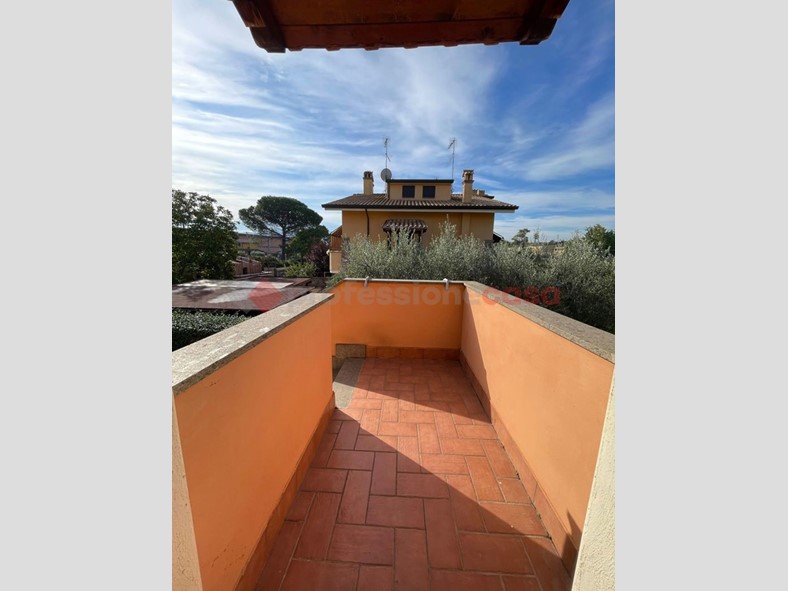 Loc. Pantano - appartamento in villa bilivello al 1°piano, con accesso carrabile e pedonale: soggiorno con angolo cottura, disimpegno, camera, cameretta e bagno. Open space mansardato di 20 mq con servizio. Due balconi, di cui uno in parte verandato con barbecue, ripostiglio sottoscala e giardino, in parte mattonato, di 140 mq. 3 posti auto interni scoperti. L'immobile di trova a 1 km dalla fermata metro C di Pantano e dai supermercati e a circa 2 km da banca, posta e farmacia.