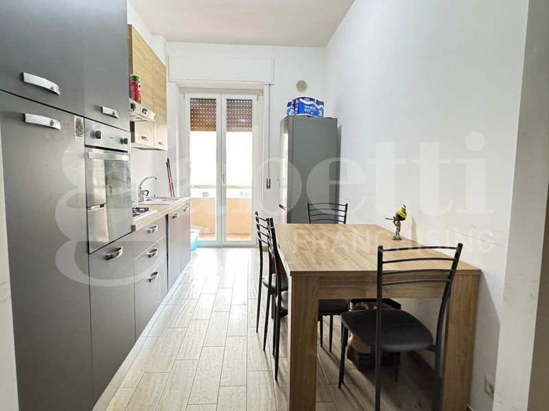 L'appartamento si presenta in buone condizioni ed è particolarmente luminoso grazie alla tripla esposizione. Dispone inoltre di due balconi, di cui uno molto ampio con affaccio diretto su Via Devitofrancesco.
