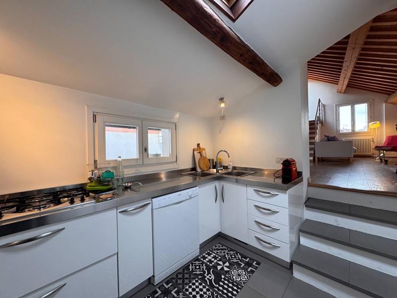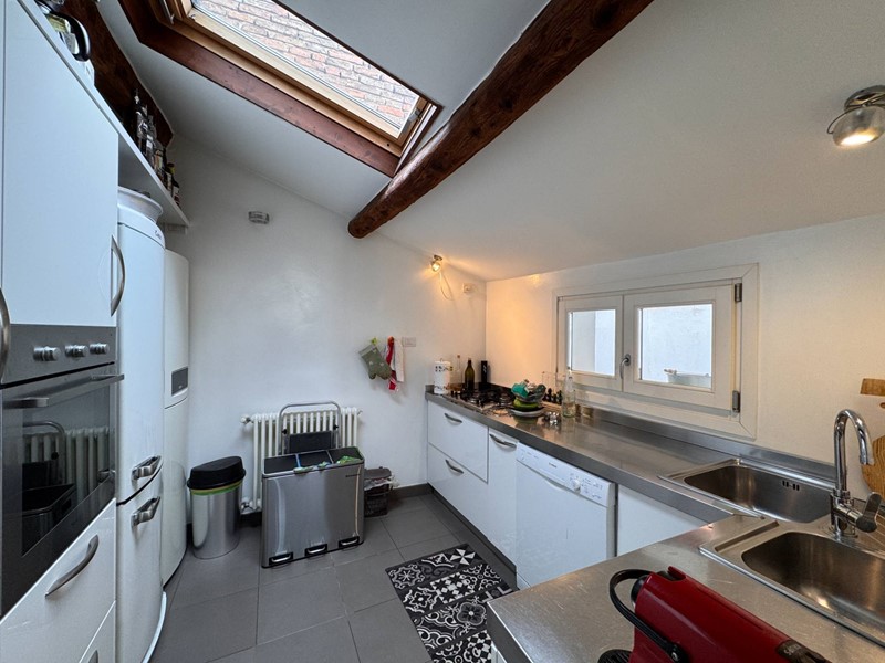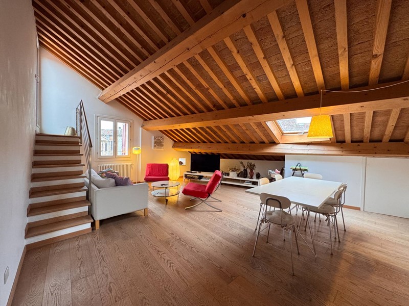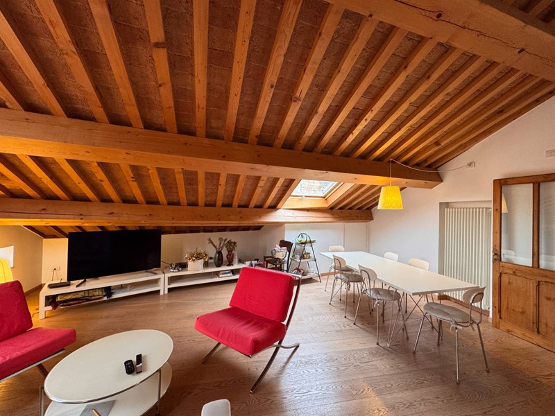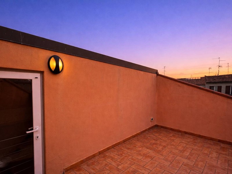 Limmobile si distingue per gli spazi ampi ed è così composto: accogliente ingresso, spazioso soggiorno con accesso diretto a un suggestivo terrazzo panoramico con vista sui tetti della città, cucina separata, due camere matrimoniali e bagno finestrato con box doccia.
