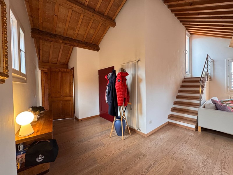 Lappartamento presenta finiture di ottimo livello che garantiscono comfort e qualità abitativa: infissi in PVC con doppi vetri, aria condizionata, impianto a pannelli solari per la produzione di acqua calda, eleganti soffitti con travi a vista e pavimenti in parquet.
