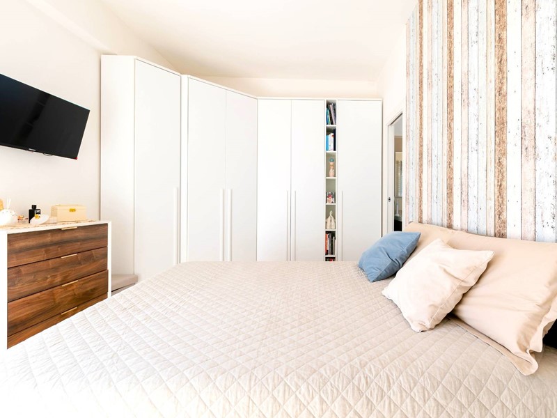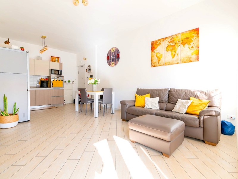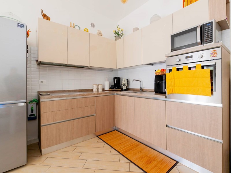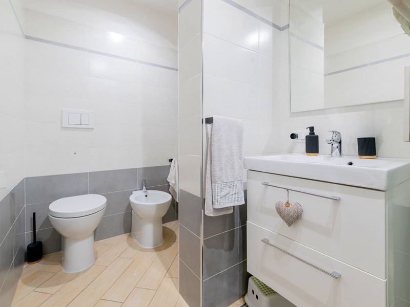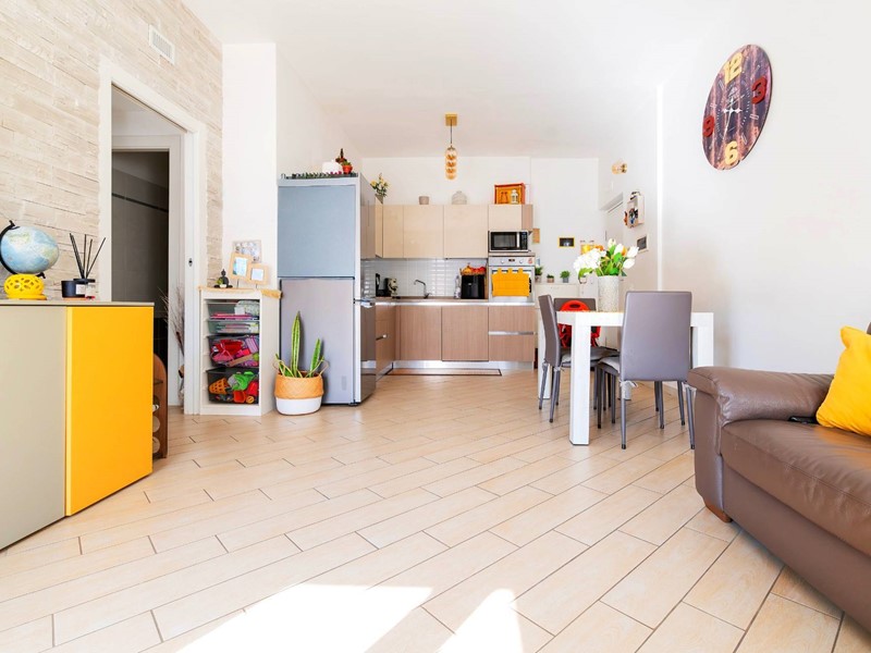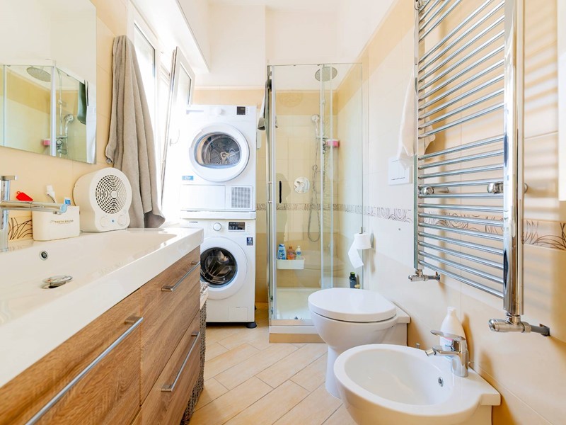 Labitazione offre standard elevati di comfort grazie al sistema di riscaldamento e raffrescamento a pavimento, le cui spese sono già incluse nella quota condominiale, allimpianto di deumidificazione integrato, ai due climatizzatori split presenti nel soggiorno e nella camera matrimoniale, alle tapparelle elettriche, alle zanzariere su tutti gli infissi e alle tende da sole. Lintero immobile è alimentato esclusivamente ad elettricità, caratteristica che, in combinazione con gli impianti tecnologici presenti, assicura un notevole risparmio energetico. Completano la proprietà un comodo posto auto in garage e una cantina al piano seminterrato. Si precisa inoltre che nel prezzo è compreso il mobilio della cucina, realizzato su misura.
