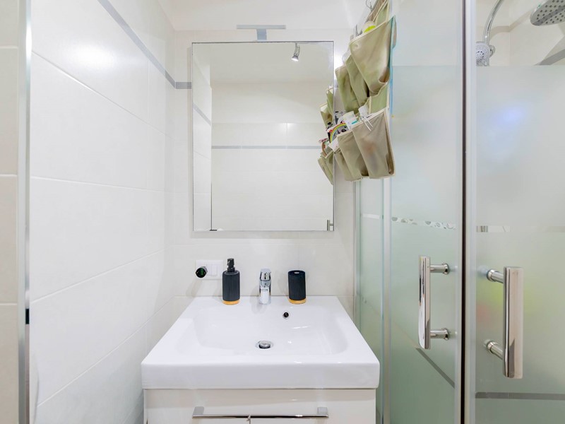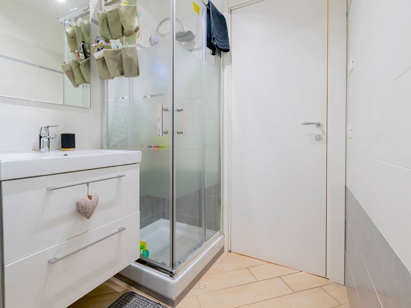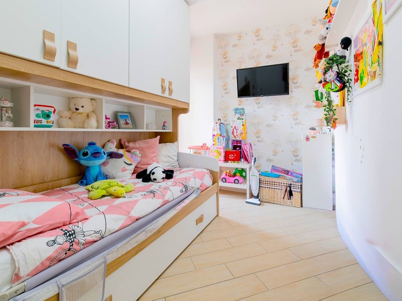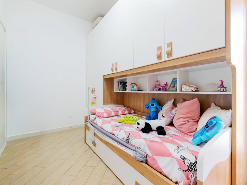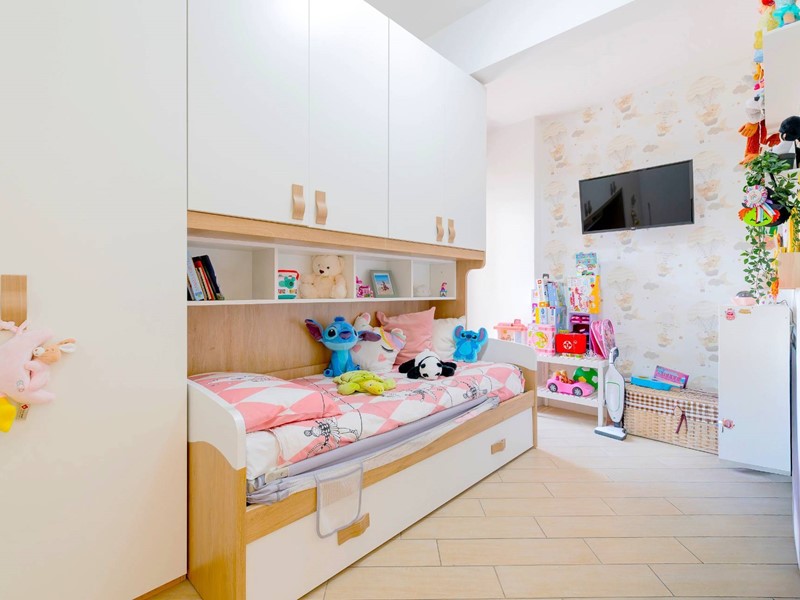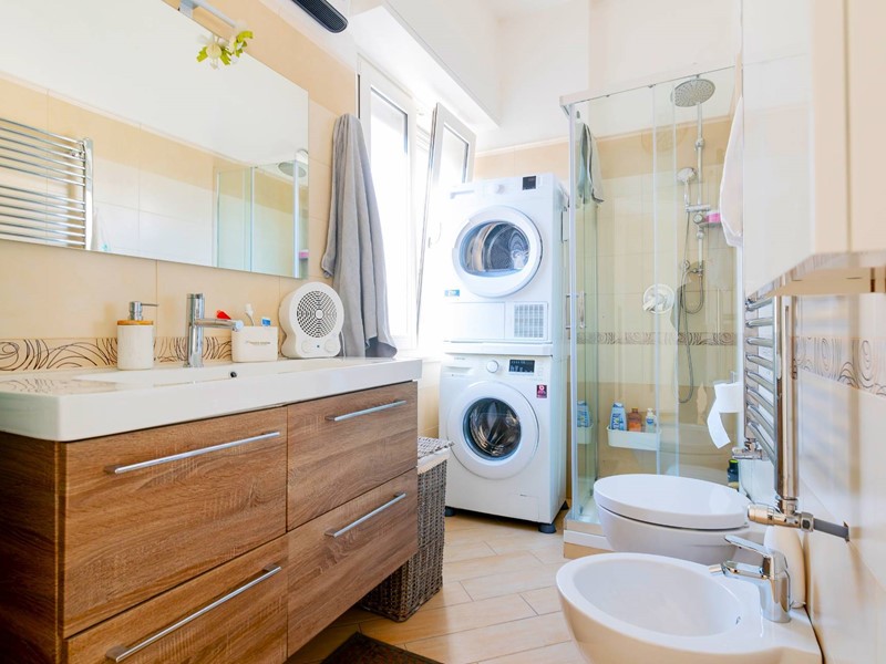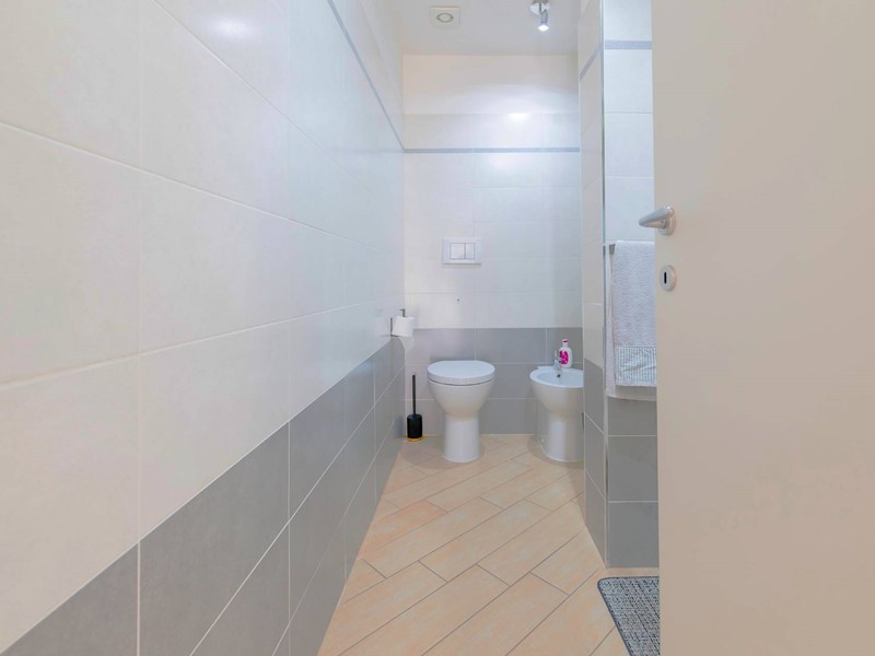 Labitazione offre standard elevati di comfort grazie al sistema di riscaldamento e raffrescamento a pavimento, le cui spese sono già incluse nella quota condominiale, allimpianto di deumidificazione integrato, ai due climatizzatori split presenti nel soggiorno e nella camera matrimoniale, alle tapparelle elettriche, alle zanzariere su tutti gli infissi e alle tende da sole. Lintero immobile è alimentato esclusivamente ad elettricità, caratteristica che, in combinazione con gli impianti tecnologici presenti, assicura un notevole risparmio energetico. Completano la proprietà un comodo posto auto in garage e una cantina al piano seminterrato. Si precisa inoltre che nel prezzo è compreso il mobilio della cucina, realizzato su misura.