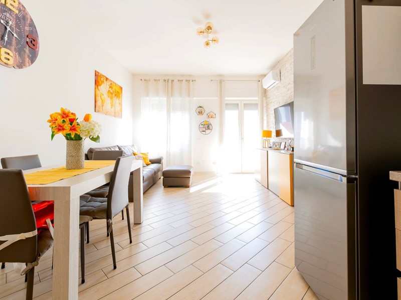 Limmobile è situato allinterno di un edificio completamente rigenerato nel 2016, privo di barriere architettoniche e dotato di ascensore, impianto fotovoltaico e solare termico a servizio delle singole unità. Lappartamento, posto al secondo piano, si apre su un soggiorno con angolo cottura dal quale si accede al balcone, la zona notte comprende una camera matrimoniale con bagno privato finestrato, una seconda camera, un bagno principale e un ulteriore balcone di servizio.