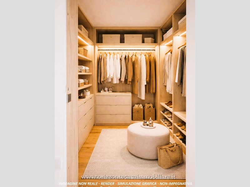 La camera matrimoniale, con la sua cabina armadio, ha quelleleganza semplice che non stanca mai.