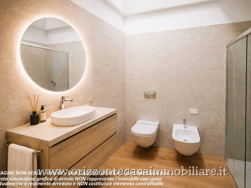 Il bagno, moderno e curato, completa un ambiente che non ha bisogno di altro per farti sentire al posto giusto.