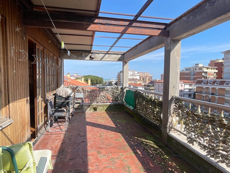 Il piano quarto sottotetto (circa 40 mq), non collegato internamente ma facilmente raggiungibile tramite la scala condominiale, rappresenta un valore aggiunto importante: qui troviamo un ambiente con cucina, una stanza con tetto spiovente, un bagno e soprattutto una ampia terrazza abitabile di circa 40 mq. Uno spazio esterno raro, da cui si gode una piacevole vista aperta, con scorci di mare e affaccio sul viale alberato.