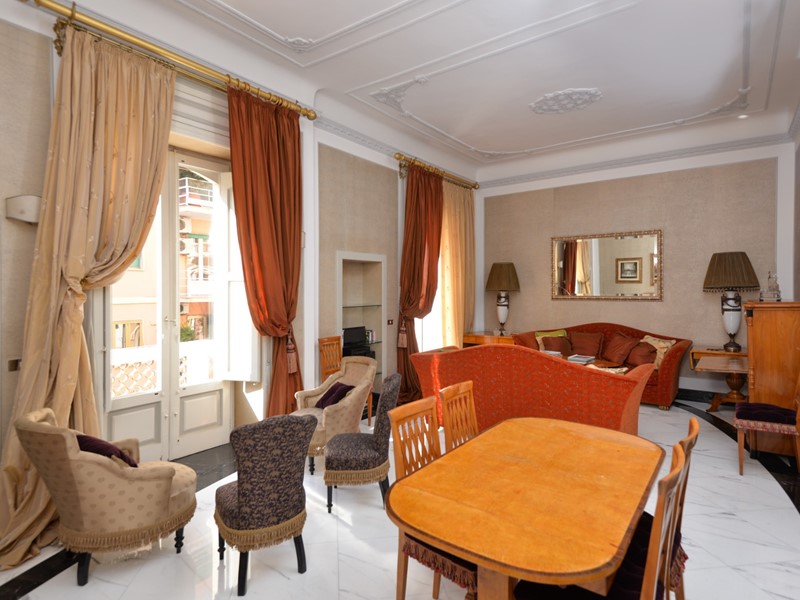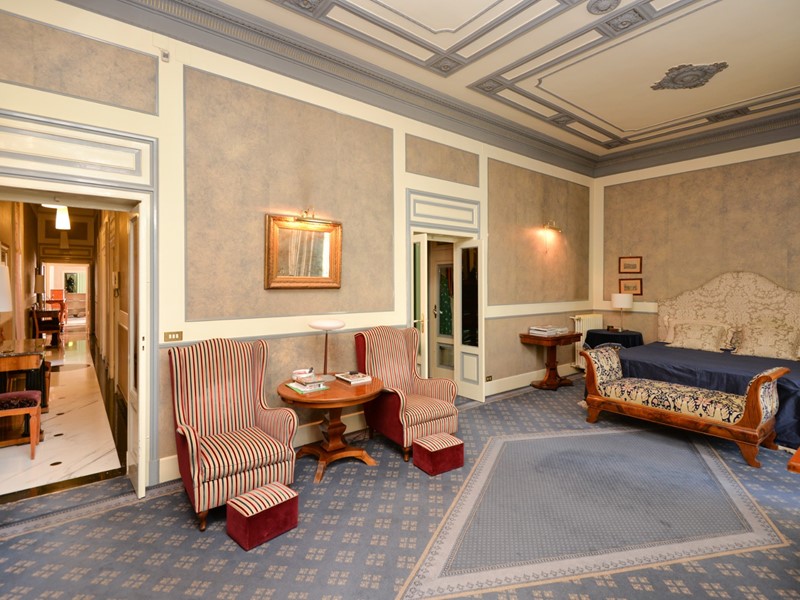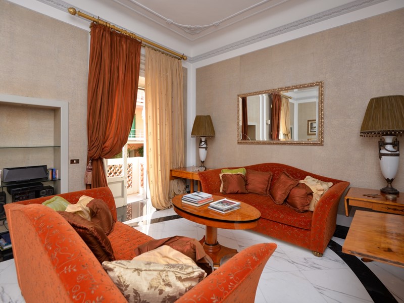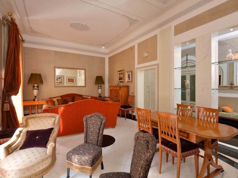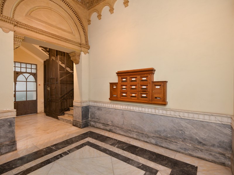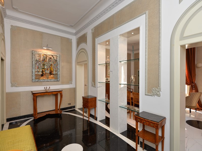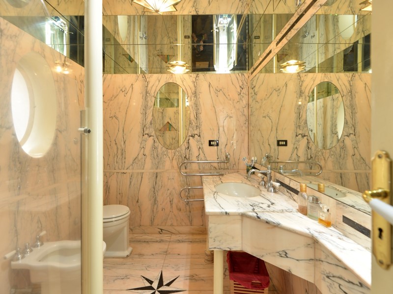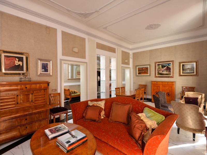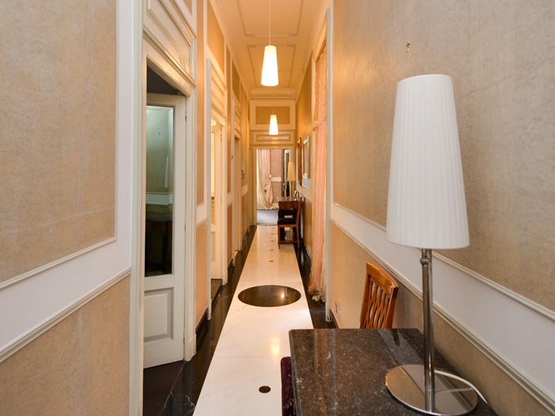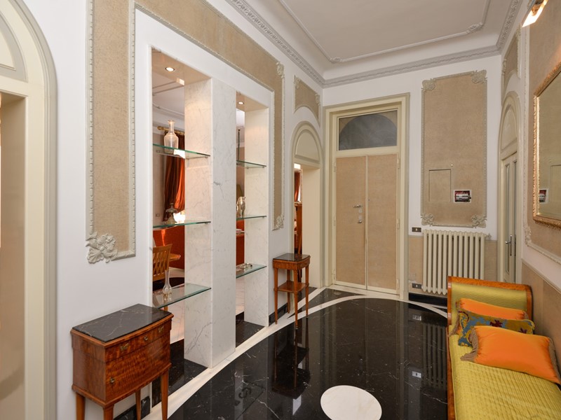 Lappartamento, finemente ristrutturato nel rispetto del carattere originario e arredato con autentici pezzi depoca in stile Biedermeier, tutti certificati, e accompagnati da opere darte del Novecento di valore collezionistico, si presenta come una dimora di grande eleganza e personalità. La pavimentazione in pregiato marmo di Carrara, uniforme e brillante, accompagna ogni ambiente trasmettendo una sensazione di continuità e prestigio.