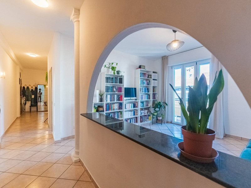 Lappartamento si distingue per una distribuzione degli spazi classica e razionale: