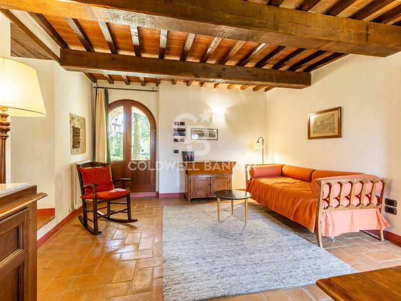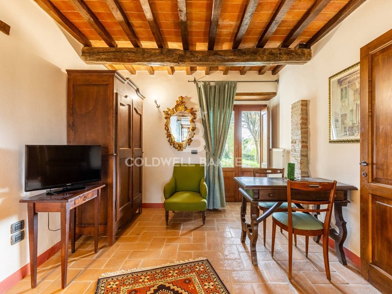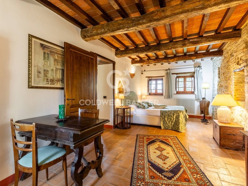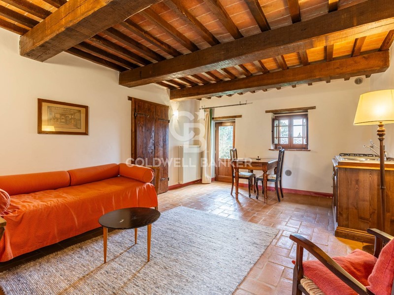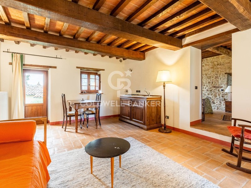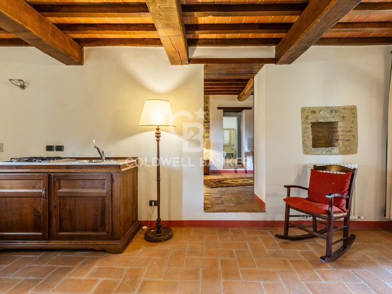 Lunità si compone di soggiorno con angolo cottura, camera matrimoniale e bagno en-suite, presenta finiture tipiche della tradizione locale come travi in legno a vista, pianelle e pavimentazioni in cotto, che conferiscono allimmobile unatmosfera autentica e di grande charme.