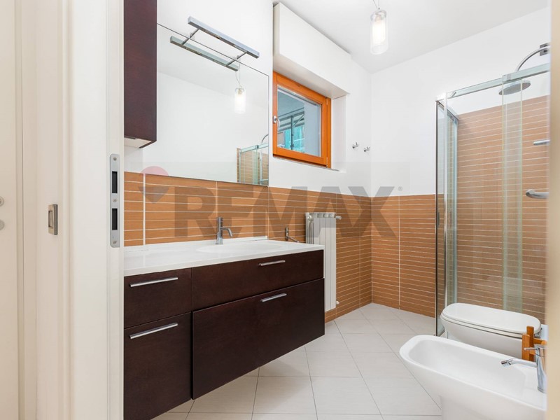 Porta di ingresso blindata, porte interne in legno tamburato bianco, video citofono, aria condizionata, riscaldamento centralizzato a termosifoni, serramenti in legno con vetrocamera, pavimenti in parquet, ceramica per bagni, impianto di antifurto perimetrale e volumetrico.