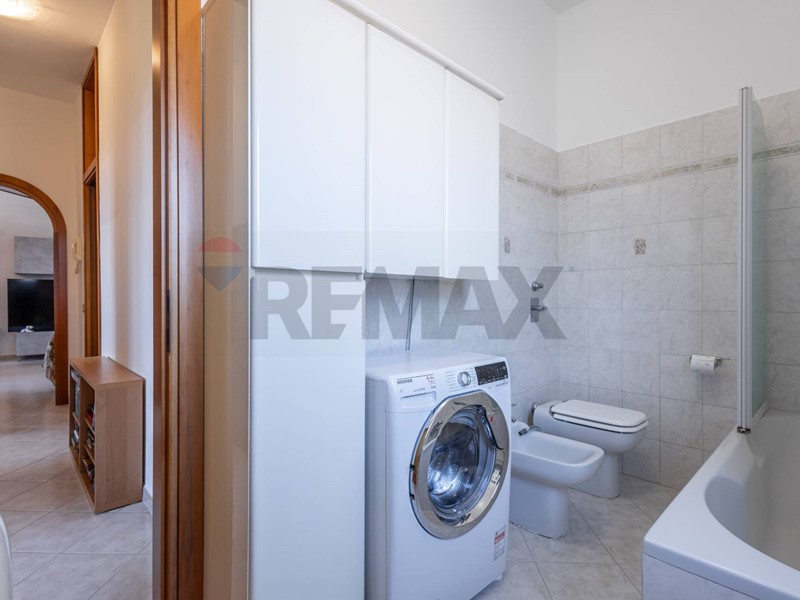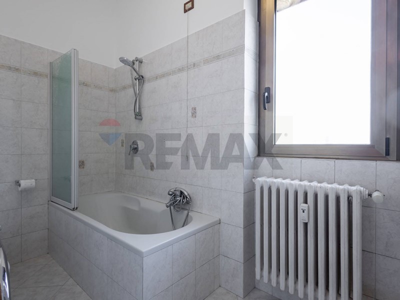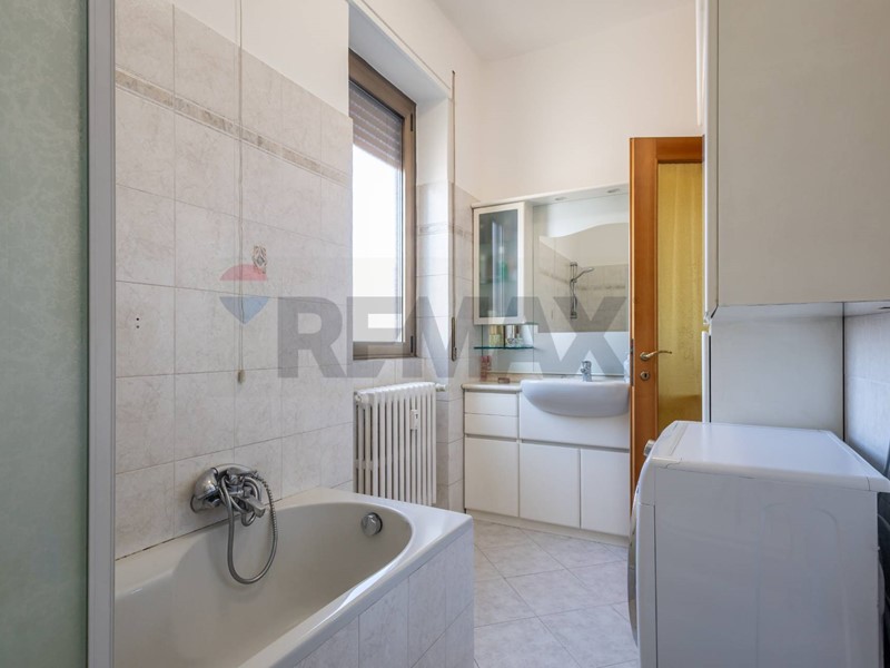 Il bagno, finestrato e completo di vasca / doccia, è funzionale e ben organizzato, con spazio dedicato anche alla lavatrice.