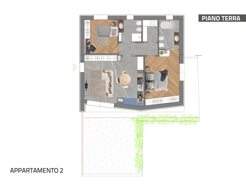 - Al piano terra con giardino privato