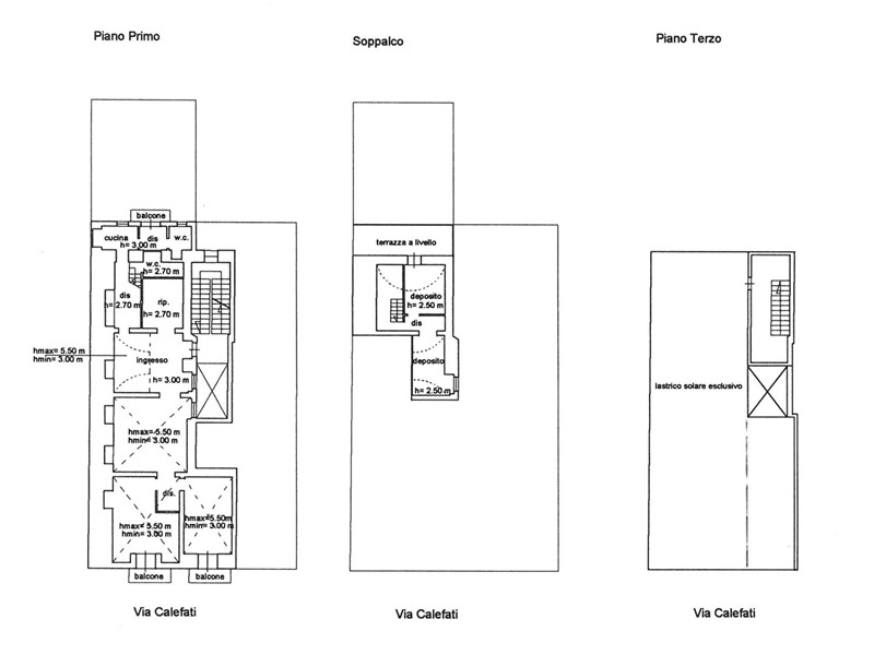 Il grande ingresso ci accoglie nell'ampia zona pranzo, con una finestra affacciata su una piccola corte, mostra da subito lo stile di tutto l'appartamento. Il pavimento in parquet fa da filo conduttore di tutta la casa. Il salotto è un ambiente elegante, con le volte alte fino mt. 5,50 ca. valorizzate dalle cornici e dal gioco di colori, con una grande finestra affacciata sul vano scale. Due varchi gemelli, dagli eleganti profili lignei, esaltano la simmetria degli ambienti e collegano il salotto ad un piccolo ambiente (attualmente utilizzato come cabina armadio), e alla cucina affacciata sul cortile interno. Un altro splendido varco ci introduce nella zona notte, composta dalla camera da letto matrimoniale e dalla seconda camera da letto, entrambe con le volte alte, ed entrambe affacciate con due balconi su Via Calefati. Girando il ns. volto verso destra, scorgiamo Via Sparano ed uno scorcio della Camera di Commercio su Corso Cavour .
