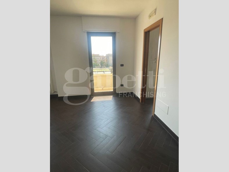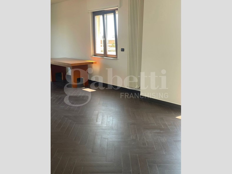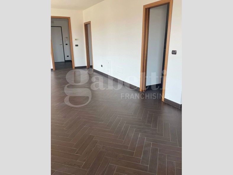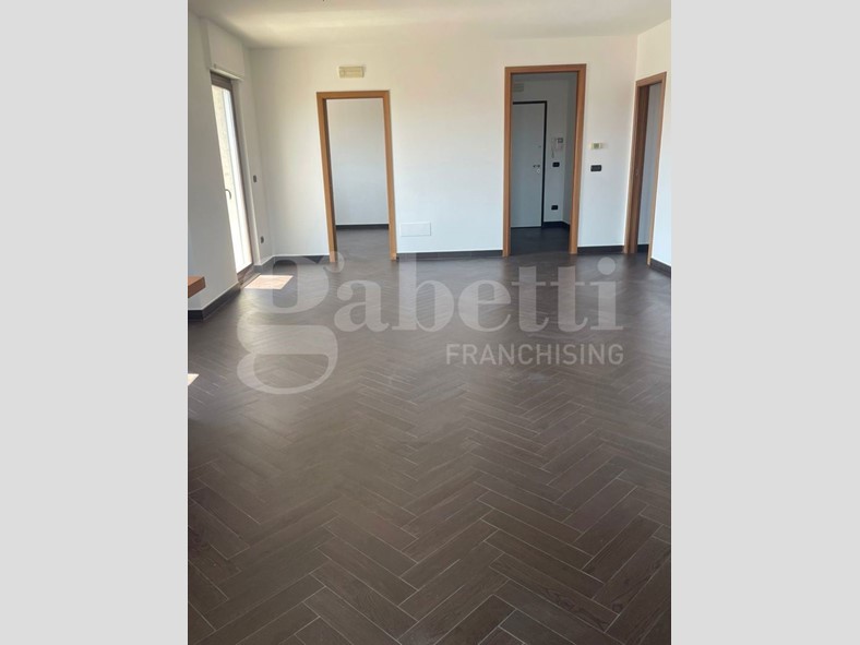 Gli spazi offrono: ingresso, cucina abitabile, ampia zona pranzo con annessa zona salotto con doppio balcone, disimpegno, due bagni e due camere da letto.
