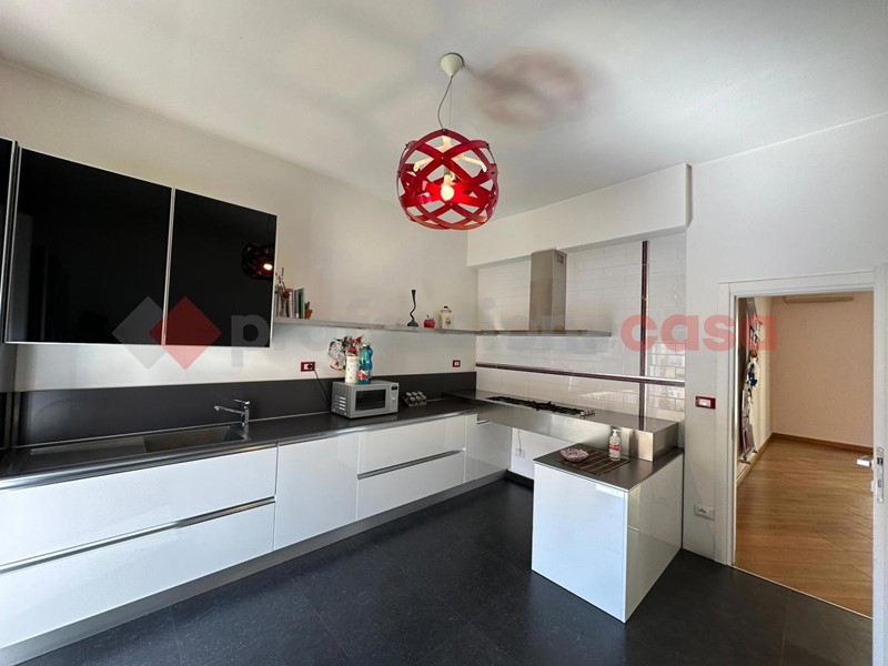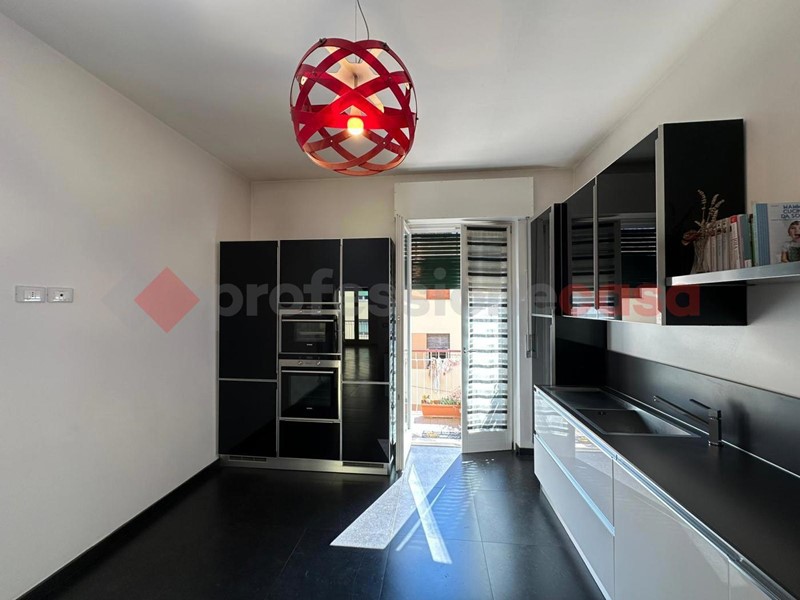 Separata dal soggiorno troviamo la moderna cucina e il suo comodo balcone.