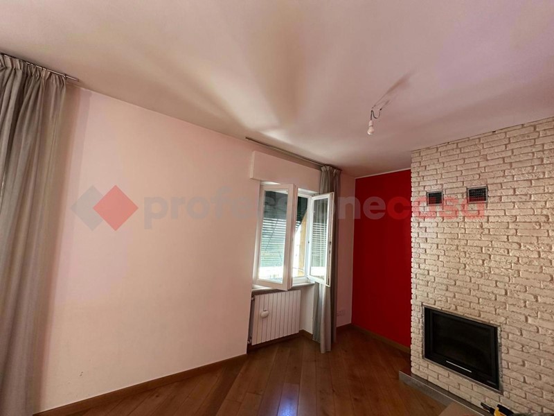 L'ingresso si apre sull'accogliente soggiorno a forma di "L", arricchito dal camino ventilato, dal condizionatore e dal balcone.