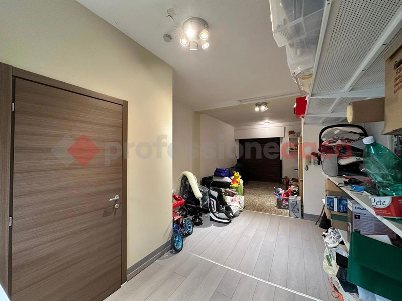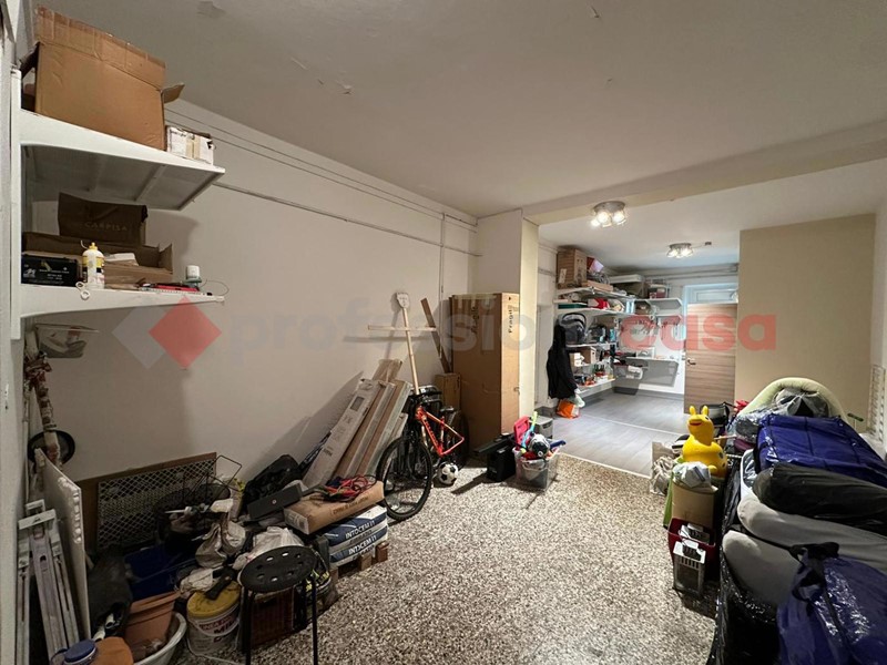 Al piano terreno l'immobile presenta come pertinenze un grande garage di 38 mq con bagno e doccia, serranda elettrica e accesso diretto al condominio e un ulteriore posto auto riservato all'esterno.