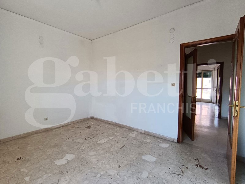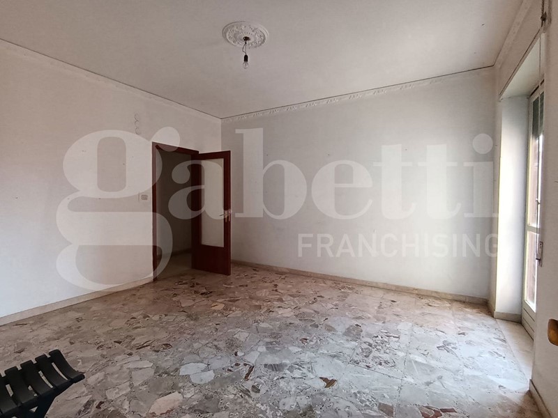 L'appartamento, in discrete condizioni e non abitato, è composto da ingresso con finestrella, lungo corridoio, salotto con accesso al balcone principale, camera singola con accesso al balcone principale, cucina abitabile con accesso al balcone comune, disimpegno, bagno principale con vasca e finestra, doppio servizio con finestra e pilozza (ed eventualmente spazio lavanderia), camera da letto con grande finestre, camera da letto matrimoniale con balcone esclusivo. La casa ha anche un posto auto doppio e libero in area condominiale, ma non recintata.