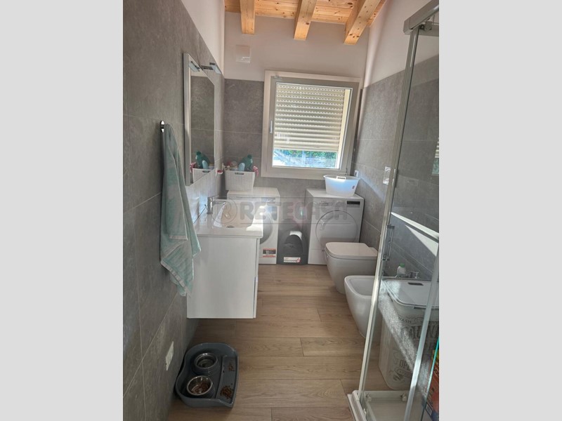 S.EUFEMIA DI BORGORICCO: In cento del paese, soluzione in classe A4, libero da agosto, bellissimo appartamento travato a vista al primo ed ultimo piano in elegante palazzina, composto da ingresso sul soggiorno con angolo cottura di circa 30 mq con accesso sul terrazzo ampio con tenda da sole, disimpegno, due camere da letto, due bagni, C.T. e comodo ripostiglio. Al piano terra garage e posto auto riservato. Arredato di cucina, aria condizionata, impianto fotovoltaico e VMC. Una vera chicca. Classe energetica A4 IPE 0,14 kWh/m2anno Euro 270.000,00 Rif 1303S